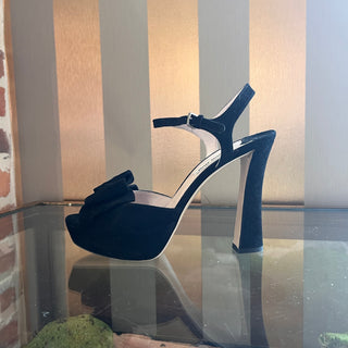 MIU MIU Black Suede Peep Toe W/ Bow Sandal Heels SZ 37 (US 7)