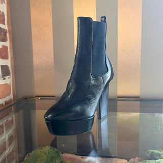 SAINT LAURENT Black Leather Platform Ankle Boots SZ 37.5 (US 7.5)