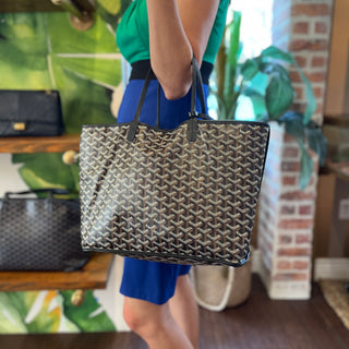 GOYARD Anjou PM Black Chevron Print Coated Canvas Reversible Tote Bag