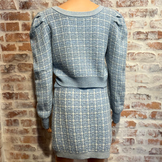 LOVESHACKFANCY Daughter Blue Tweed Crop Cardigan Callington Skirt Set SZM