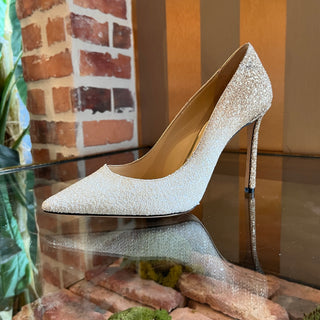 JIMMY CHOO White Gold Ombre Coarse Glitter Pumps SZ 37.5 (US 7.5)