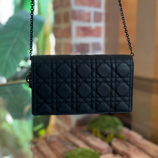 DIOR Black Matte Cannage Lady Dior Pouch Crossbody