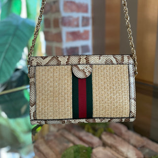 GUCCI Ophidia Small Raffia Snakeskin Chain Shoulder Bag