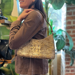 BRAHMIN Esme Gold Croc Embossed Leather Shoulder Bag