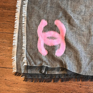 CHANEL CC Gray Cashmere Blend Scarf Shawl