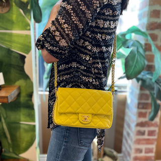 CHANEL Coco You Mini Neon Yellow Caviar Leather Flap Shoulder Bag