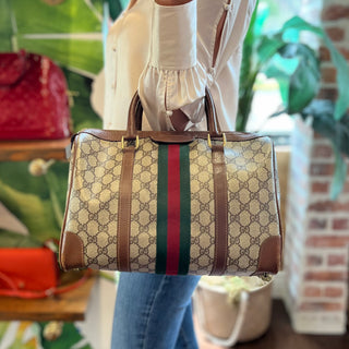GUCCI Brown GG Canvas Web Vintage Satchel