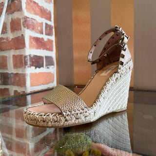 VALENTINO Metallic Double Rockstud Espadrilles Wedges SZ 38 (US 8)