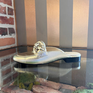 CHANEL Metallic Gold Braided Chain Mule Flats SZ 38 (US 8)