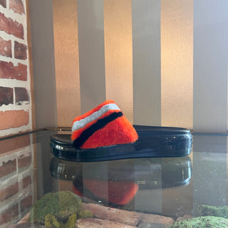 PRADA Black Leather Orange Fur Slides SZ 37.5 (US 7.5)