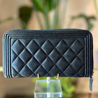 CHANEL Caviar Quilted Boy Long Zip Around Wallet Black