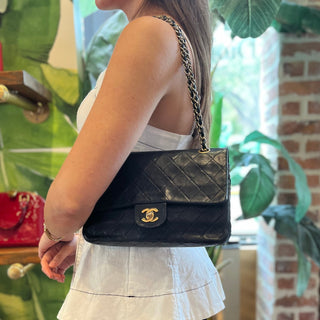 CHANEL Classic Double Flap Medium Black Quilted Lambskin Vintage Shoulder Bag