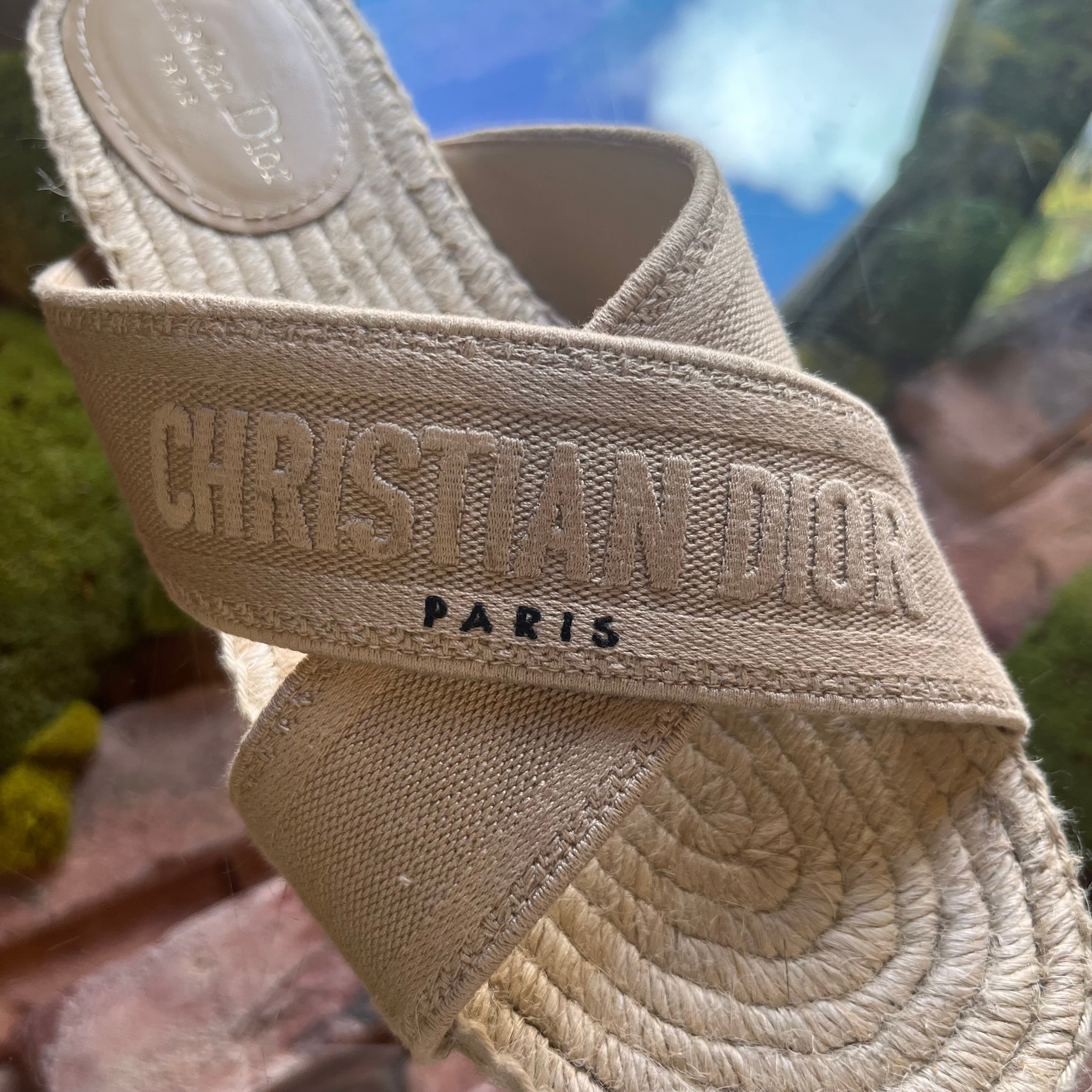 CHRISTIAN DIOR Beige Canvas Espadrilles Slides SZ 39 (US 9)