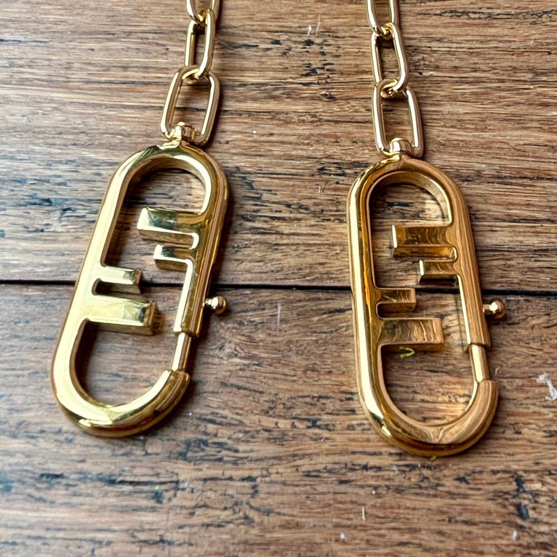 - Details: Leather tabs at each end with Fendi logo-engraved clips for easy attachment