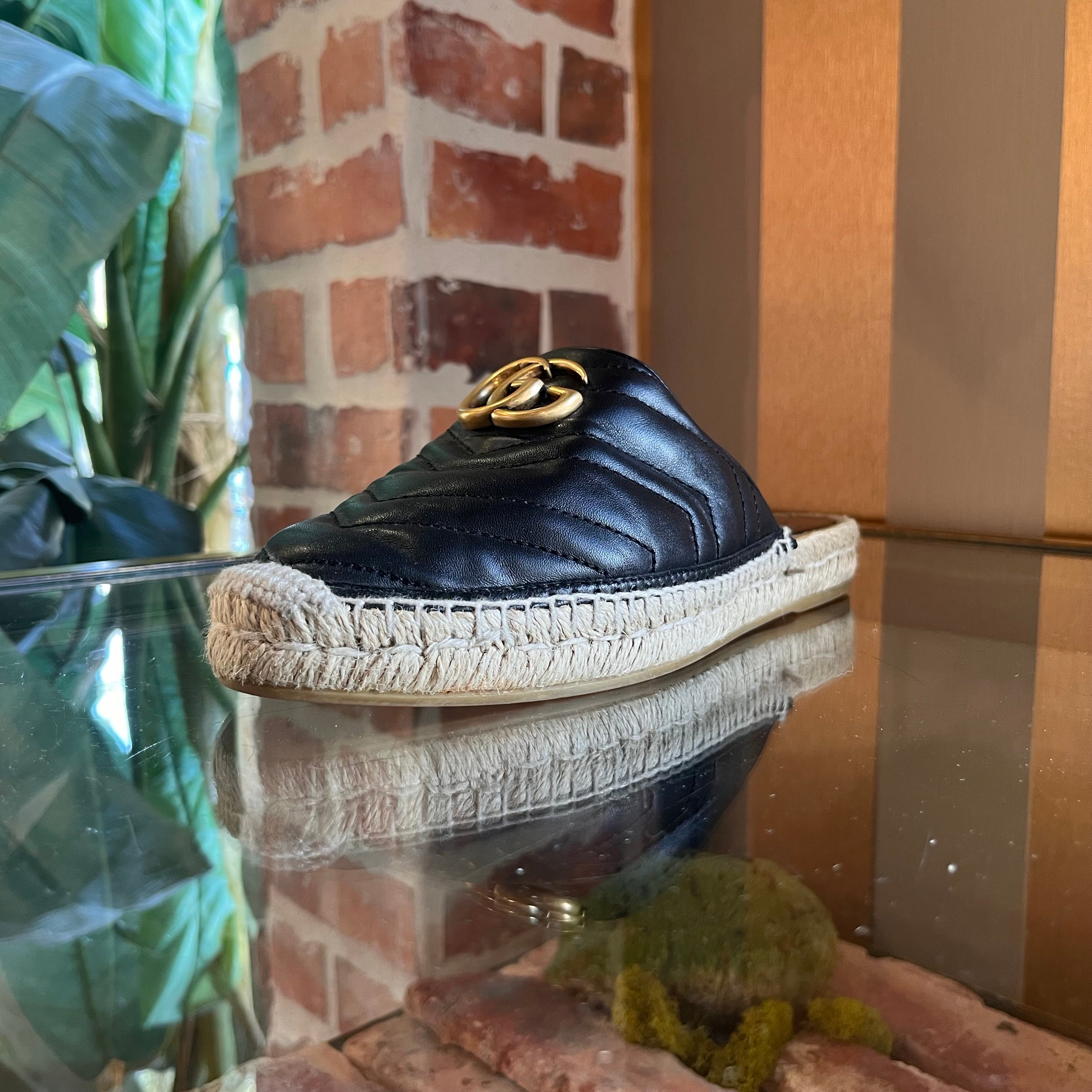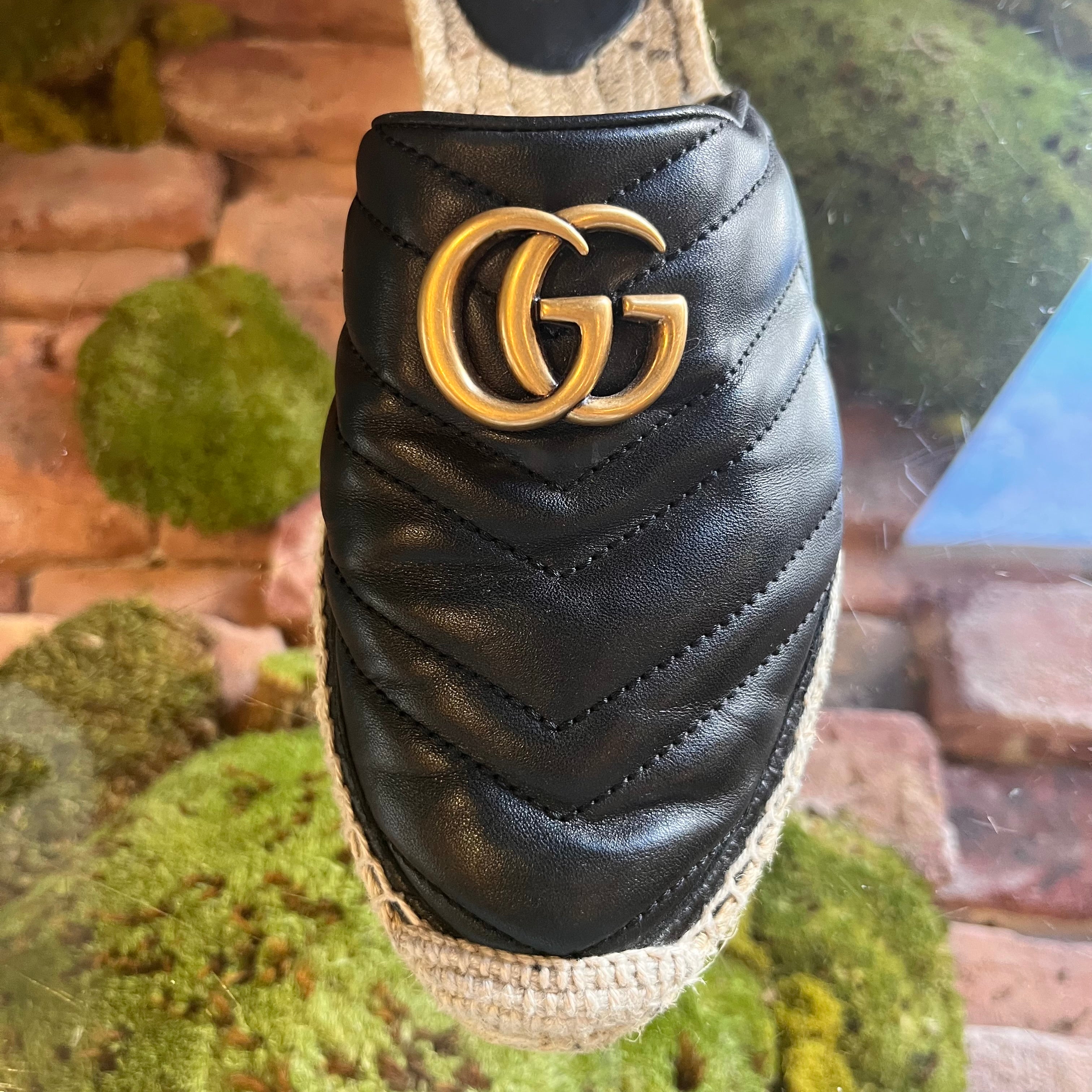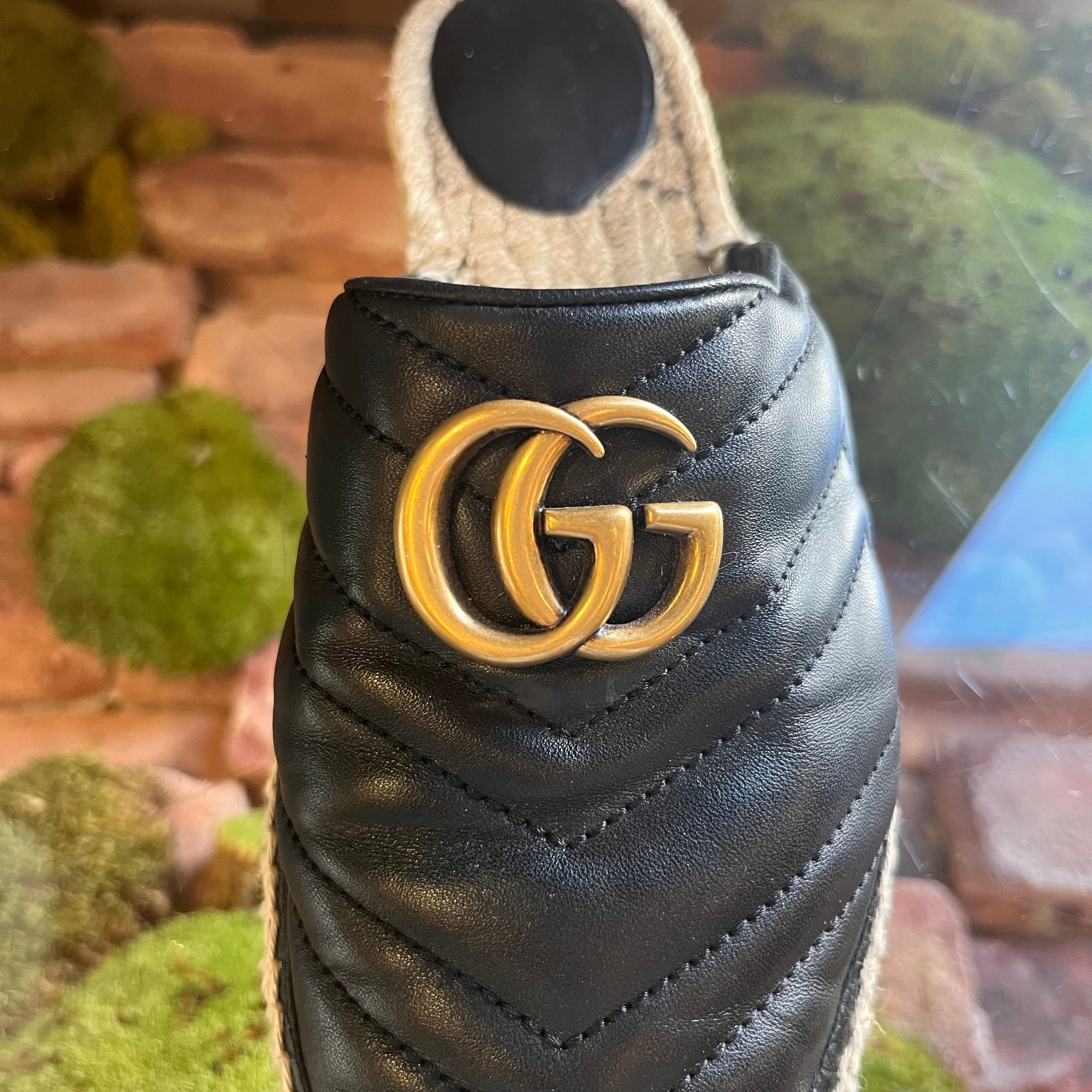GUCCI Black Matelasse Nappa Leather Marmont Espadrilles SZ 38 (US 8)