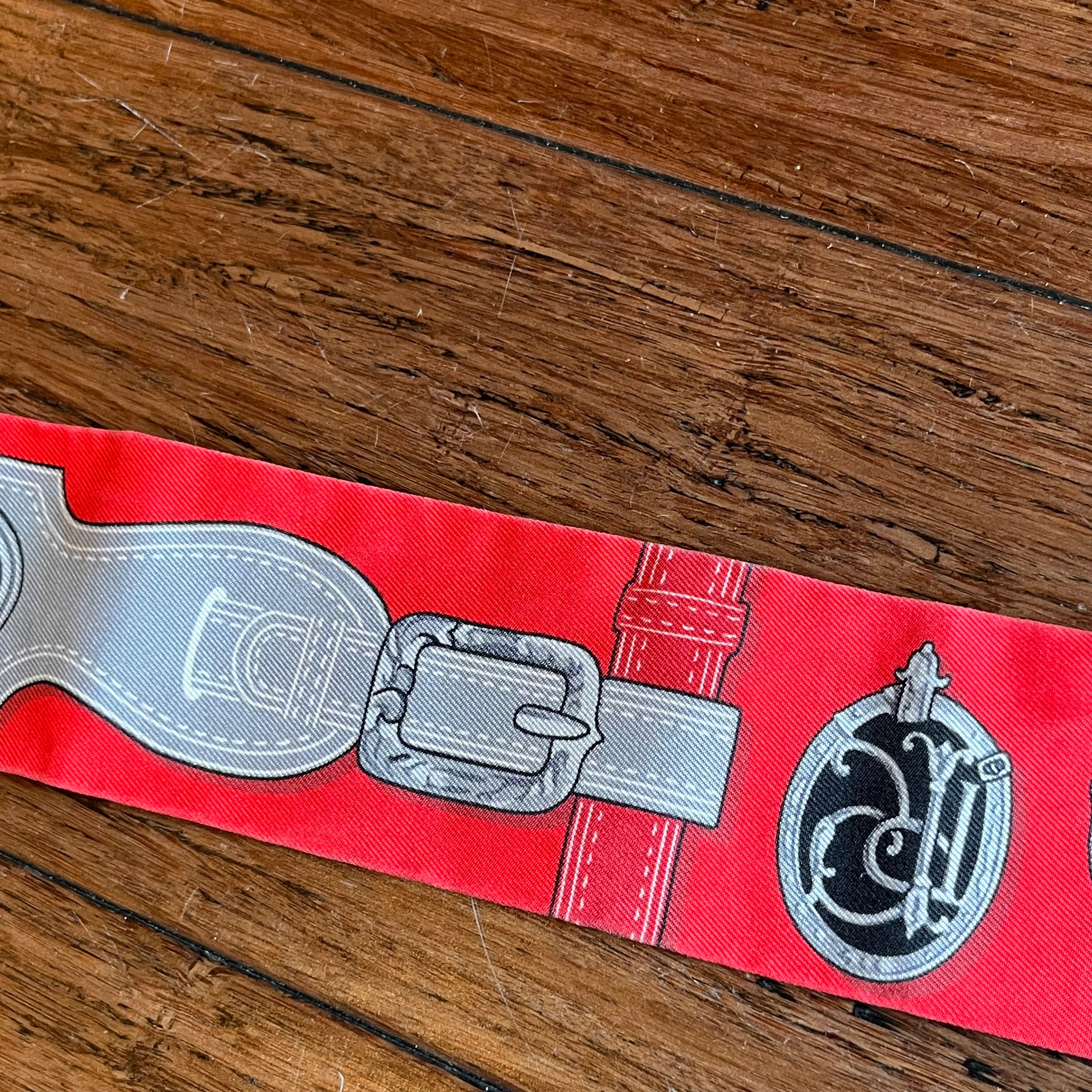 HERMES Rouge Noir Gris Harnais des Présidents Silk Twilly