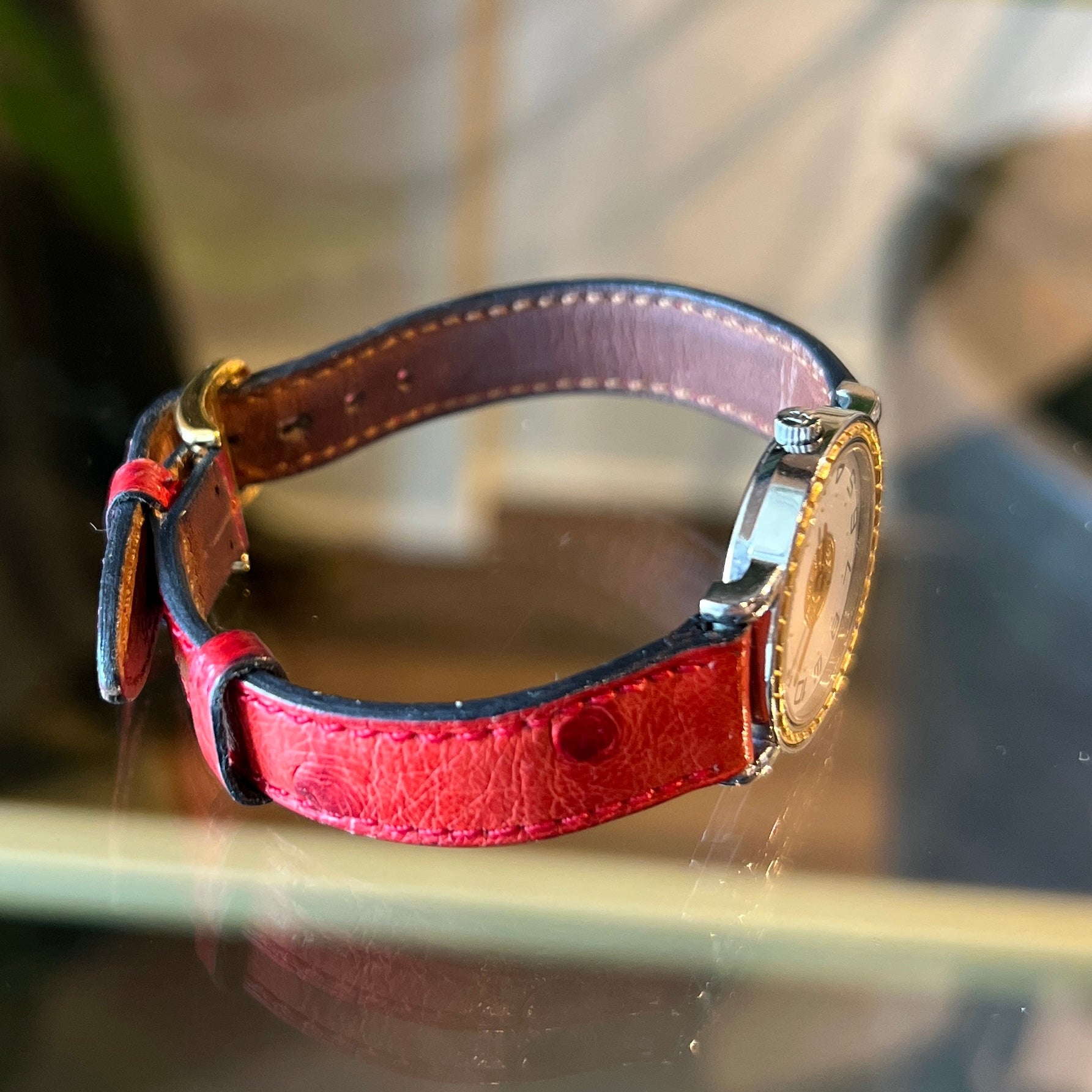 HERMES Sellier Round Ostrich Watch