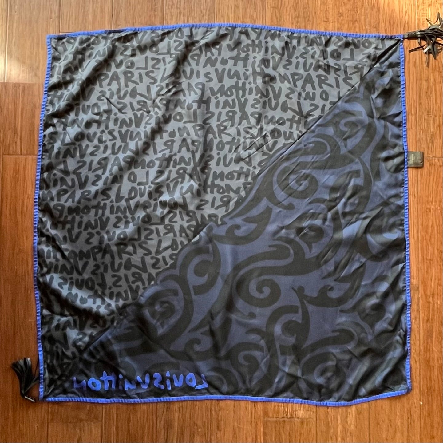 LOUIS VUITTON Stephen Sprouse Blue Tassel Scarf