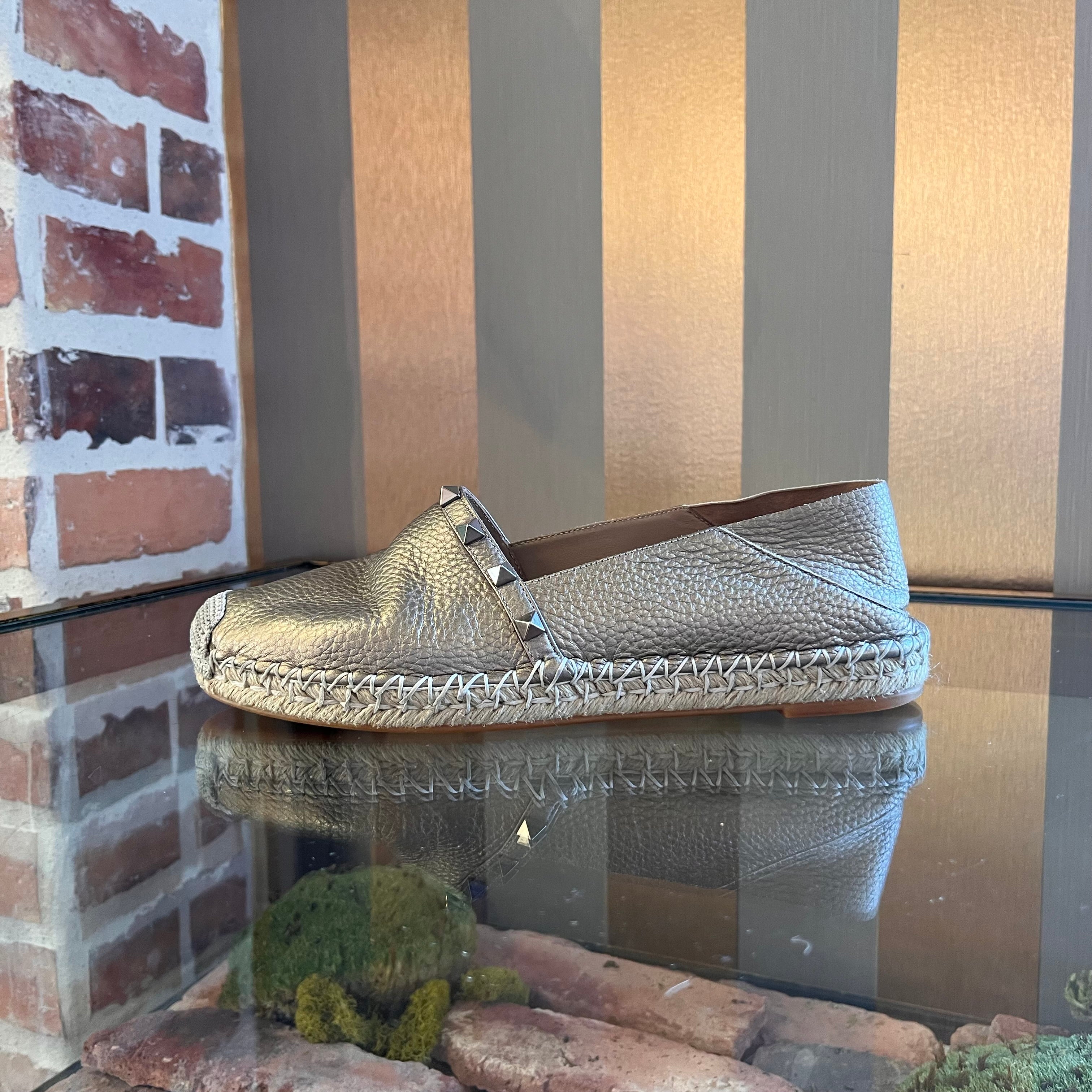 VALENTINO Metallic Gold Leather Rockstud Espadrilles Flats SZ 38 (US 8)