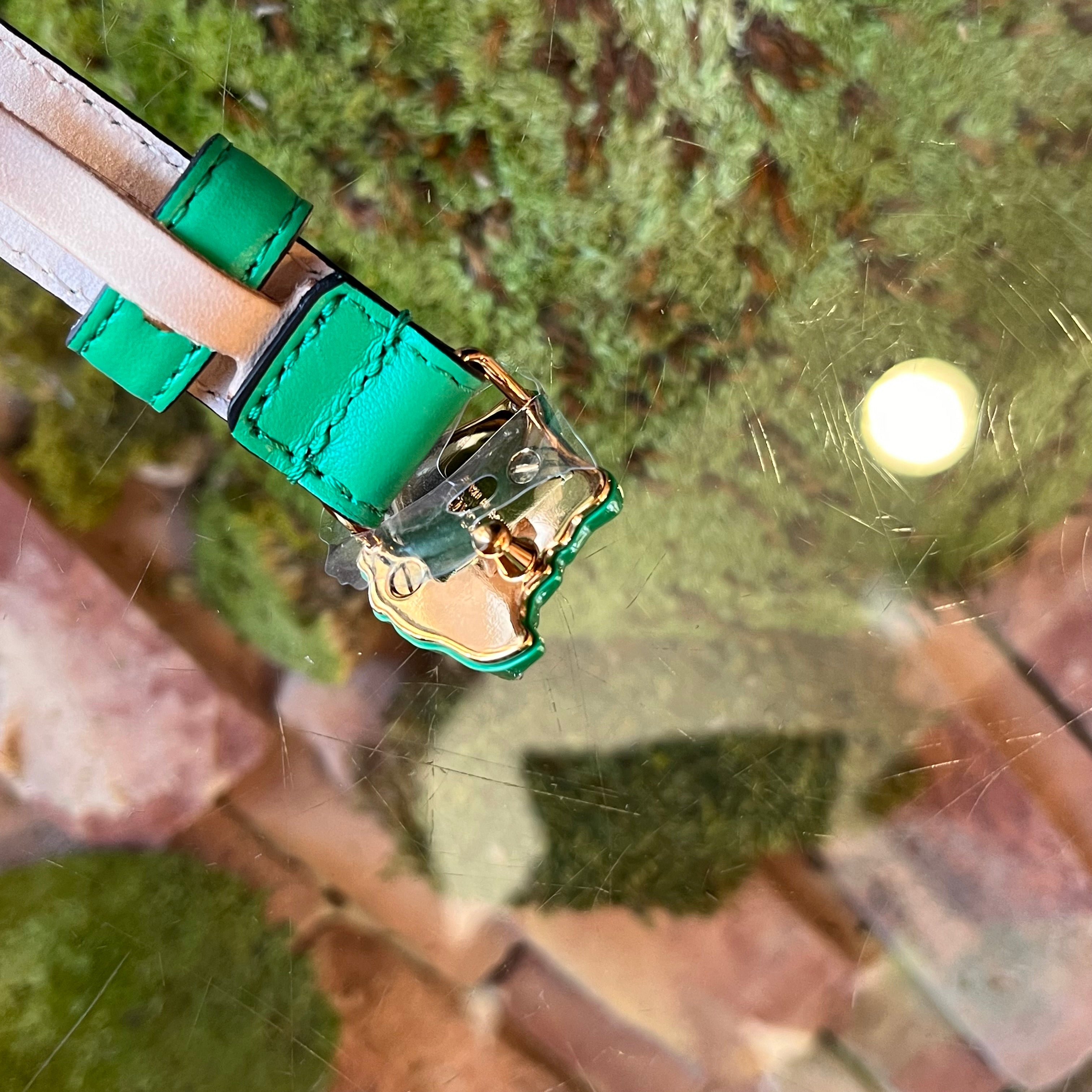 - Exterior: The strap remains functional and well-maintained with the protective plastic still attached to the hardware. Overall it's in great condition.