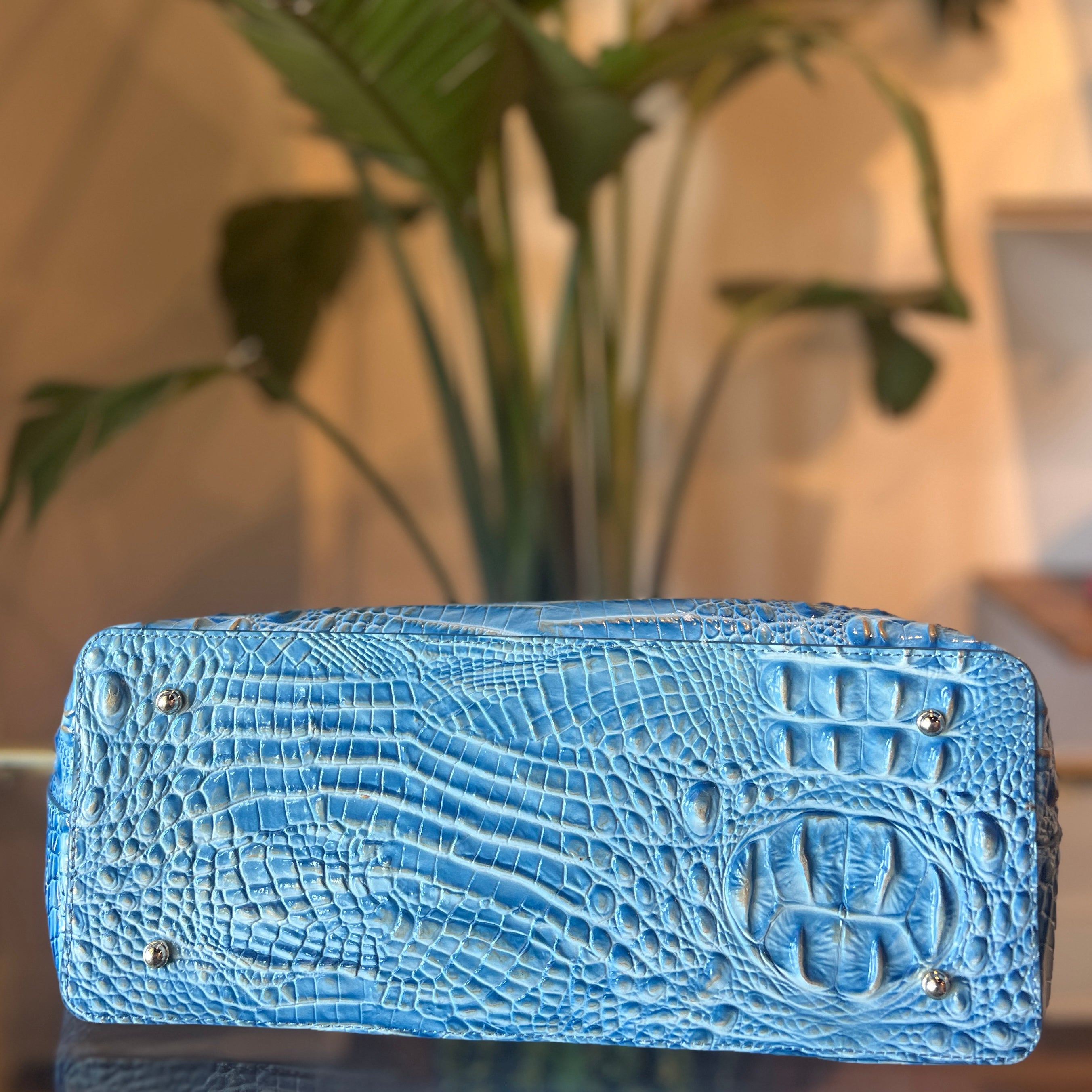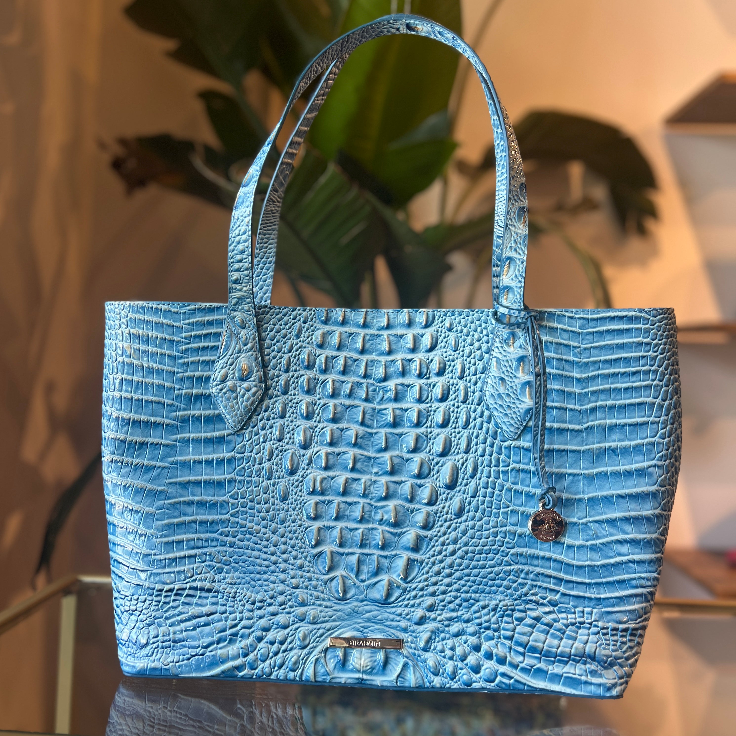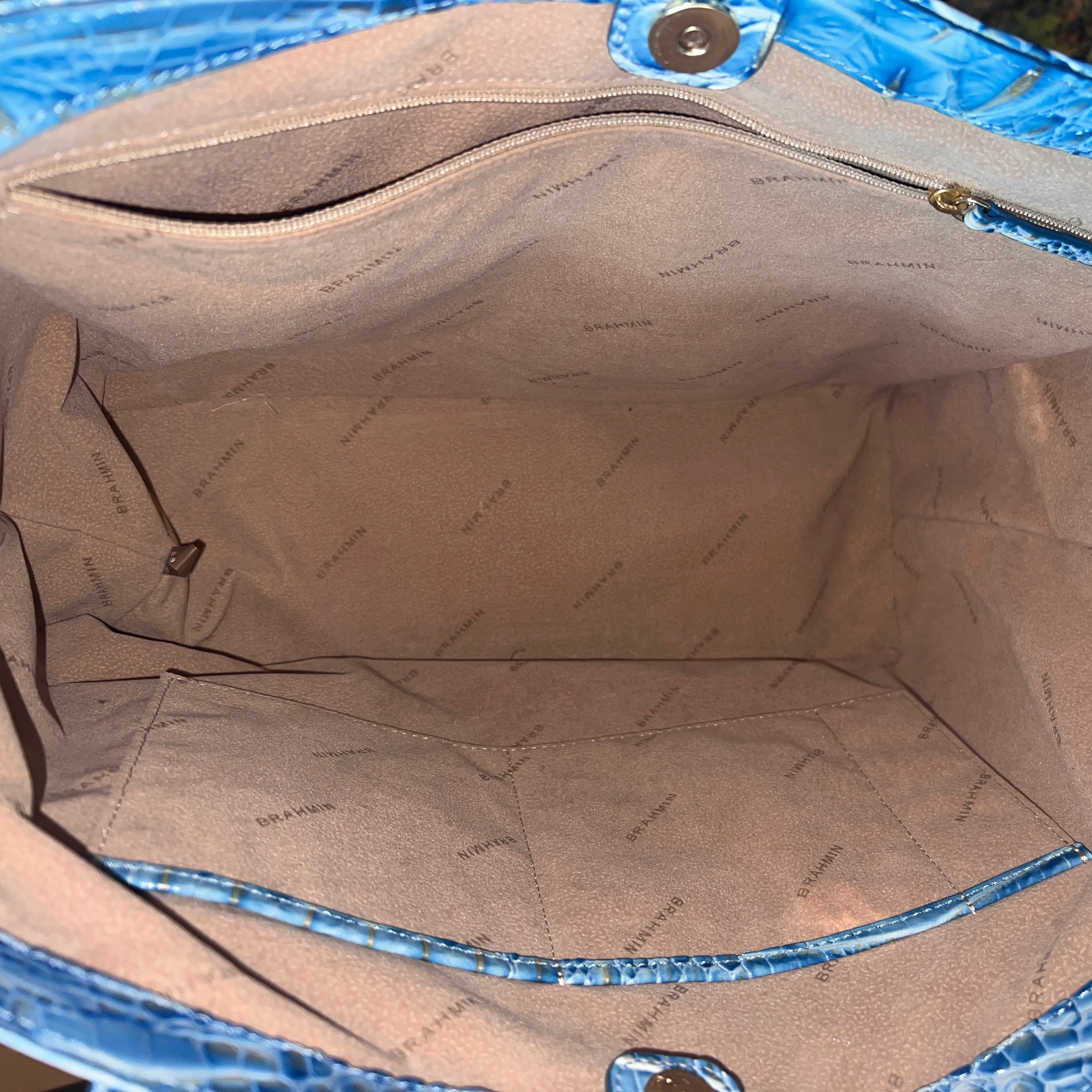 BRAHMIN Athena Tote Blue Melbourne Croc Embossed Leather Tote Bag