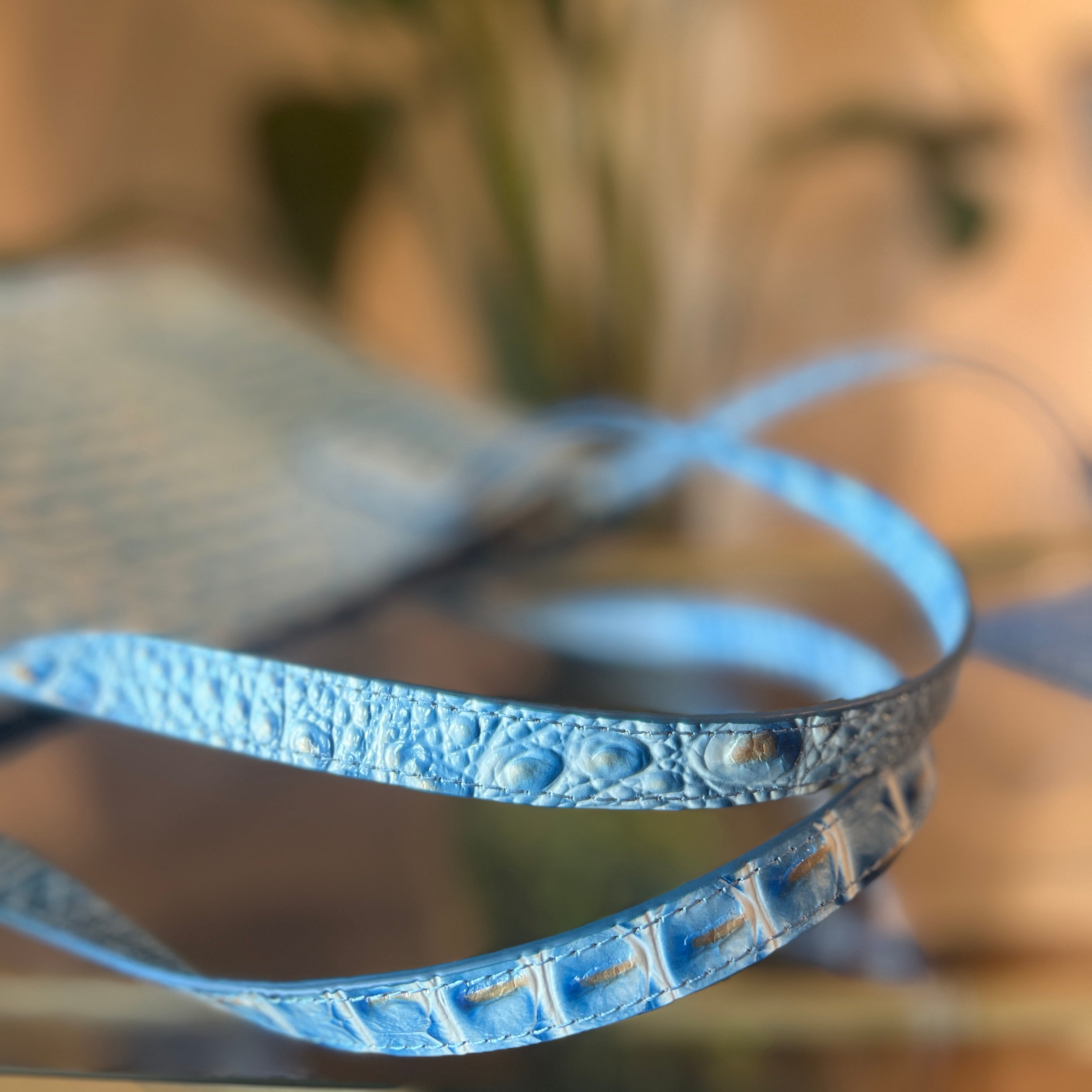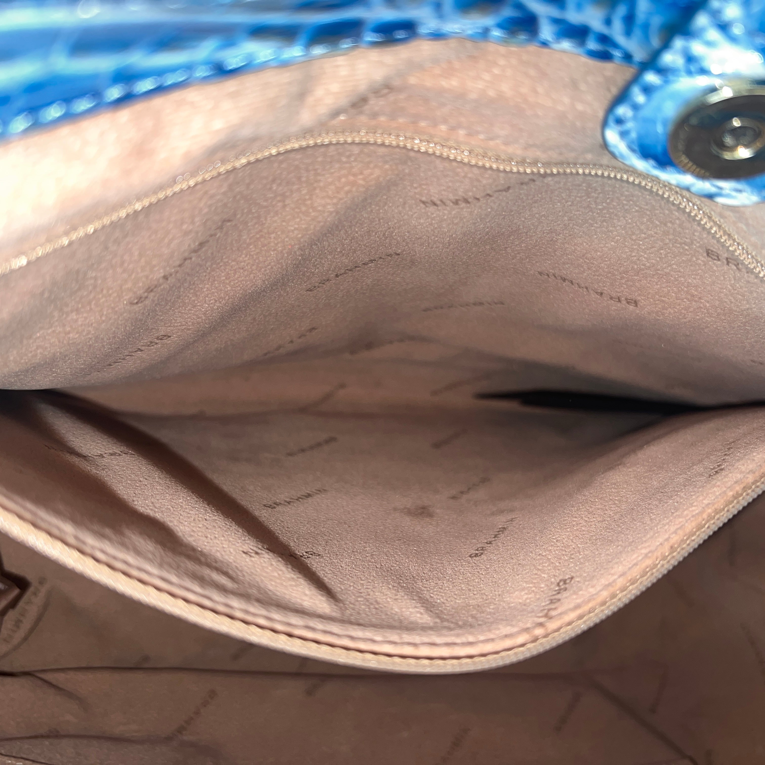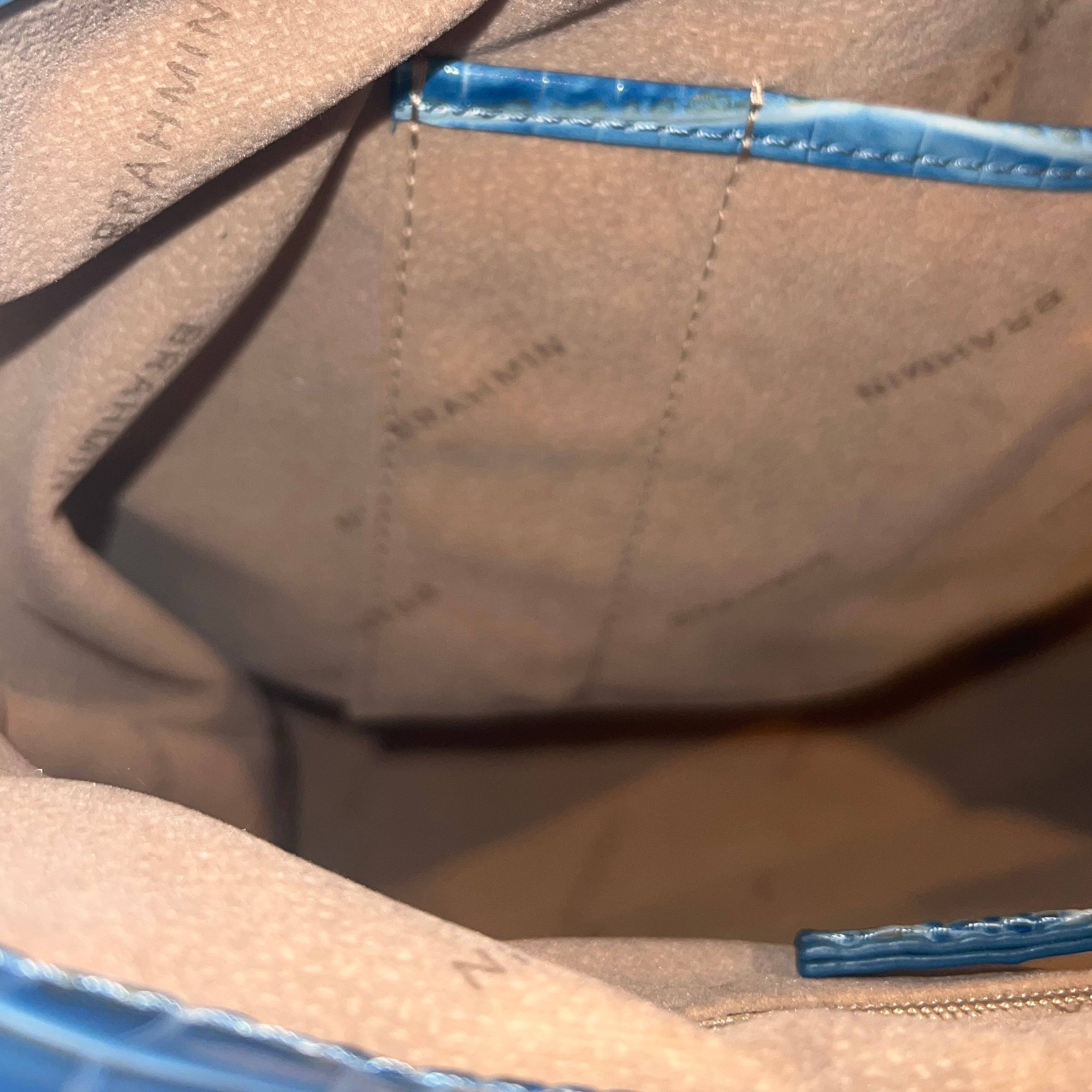 BRAHMIN Athena Tote Blue Melbourne Croc Embossed Leather Tote Bag