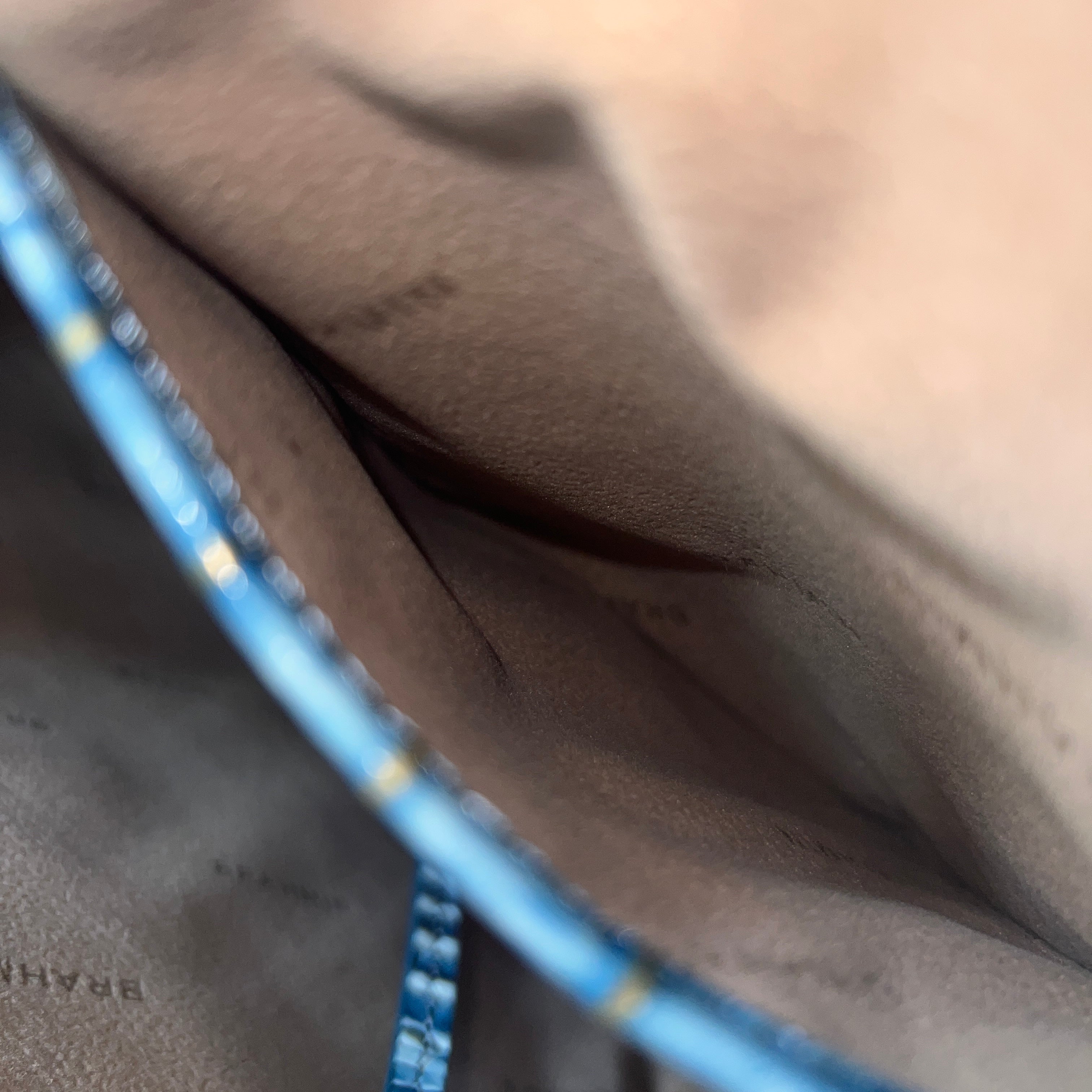 - Handle: The straps are misshapen possibly from how it was previously stored. Minor wear; intact and functional.