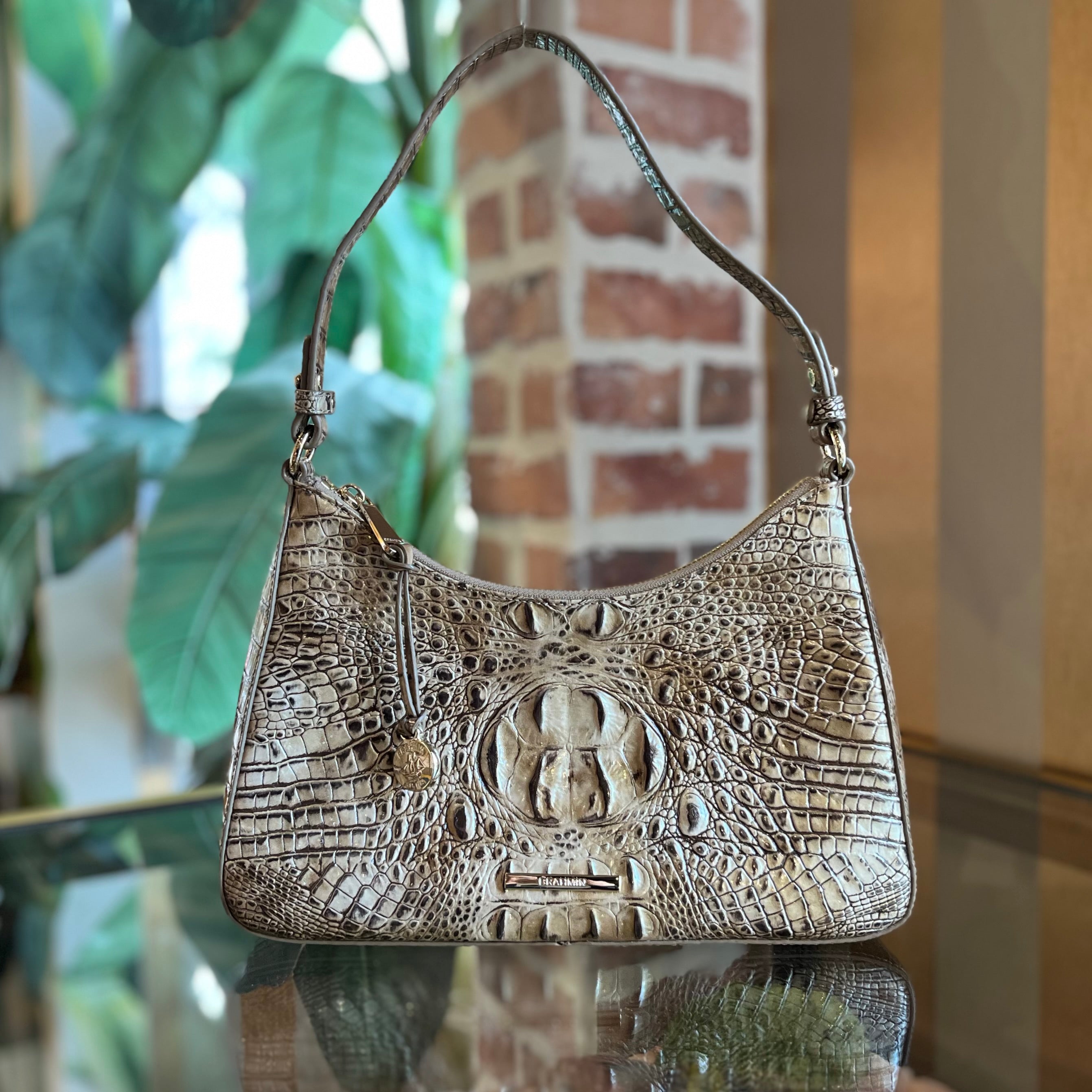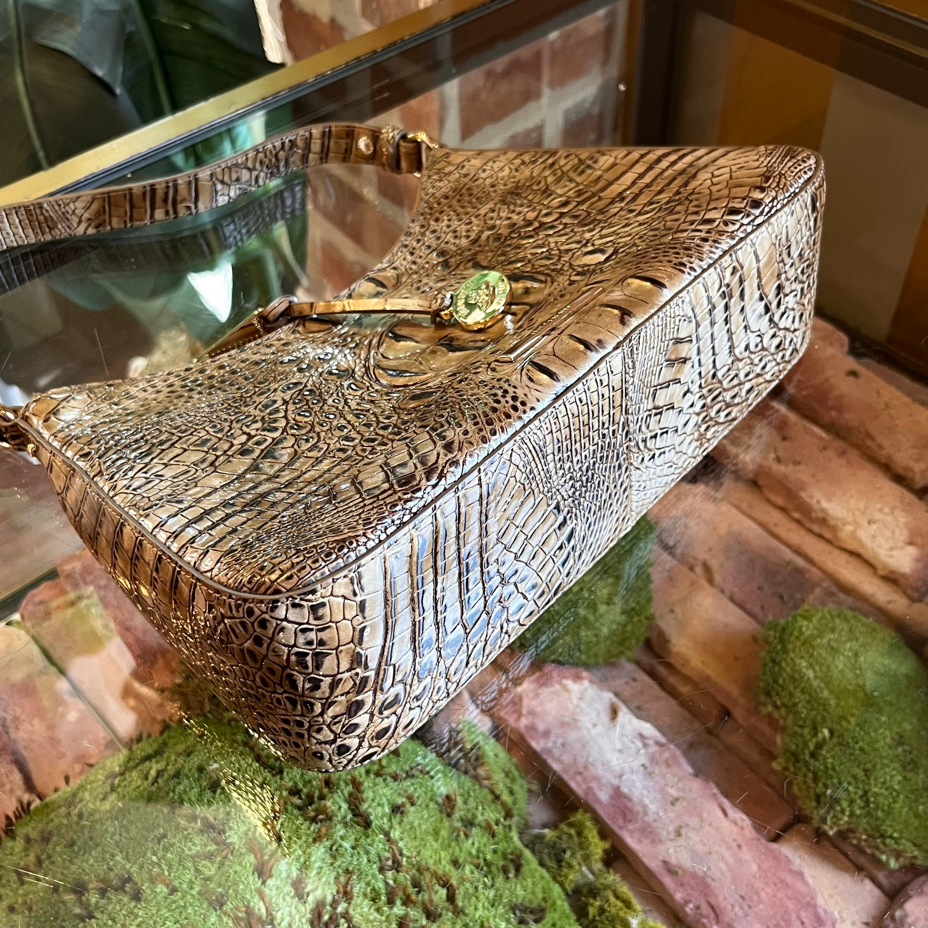 BRAHMIN Esme Gold Croc Embossed Leather Shoulder Bag