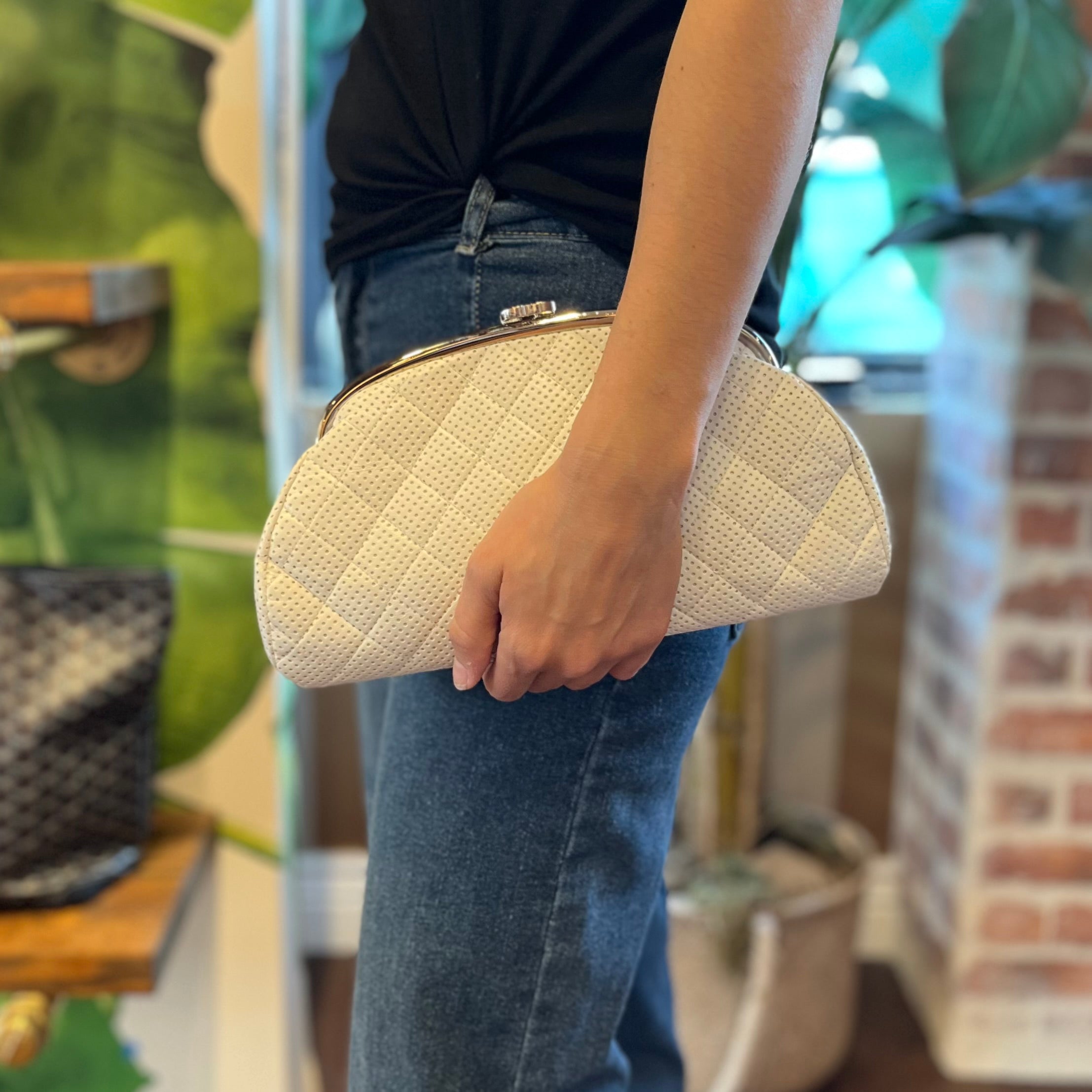 CHANEL Timeless White Perforated Leather Clutch Bag