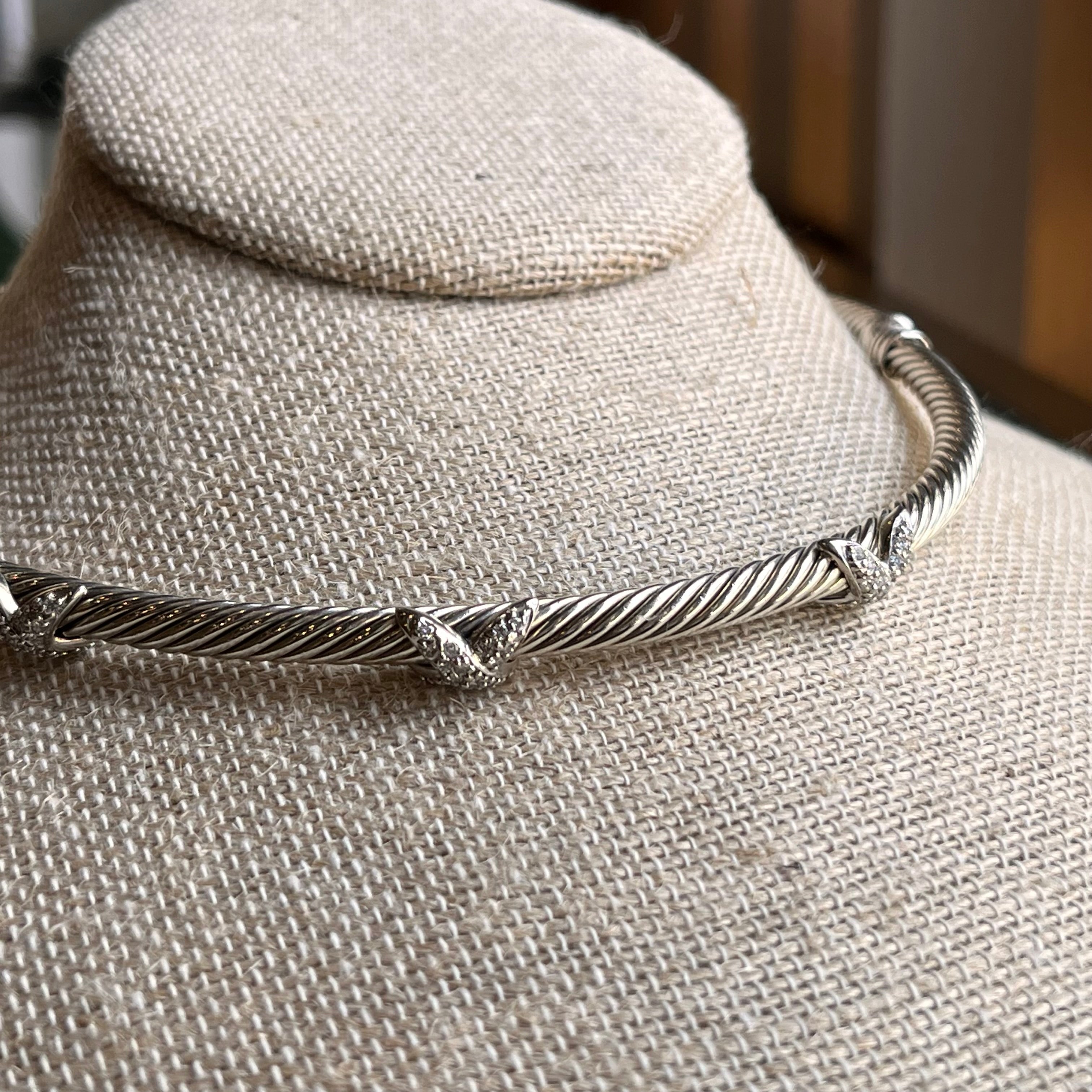 DAVID YURMAN X Station Cable Diamond Sterling Silver Choker Necklace D