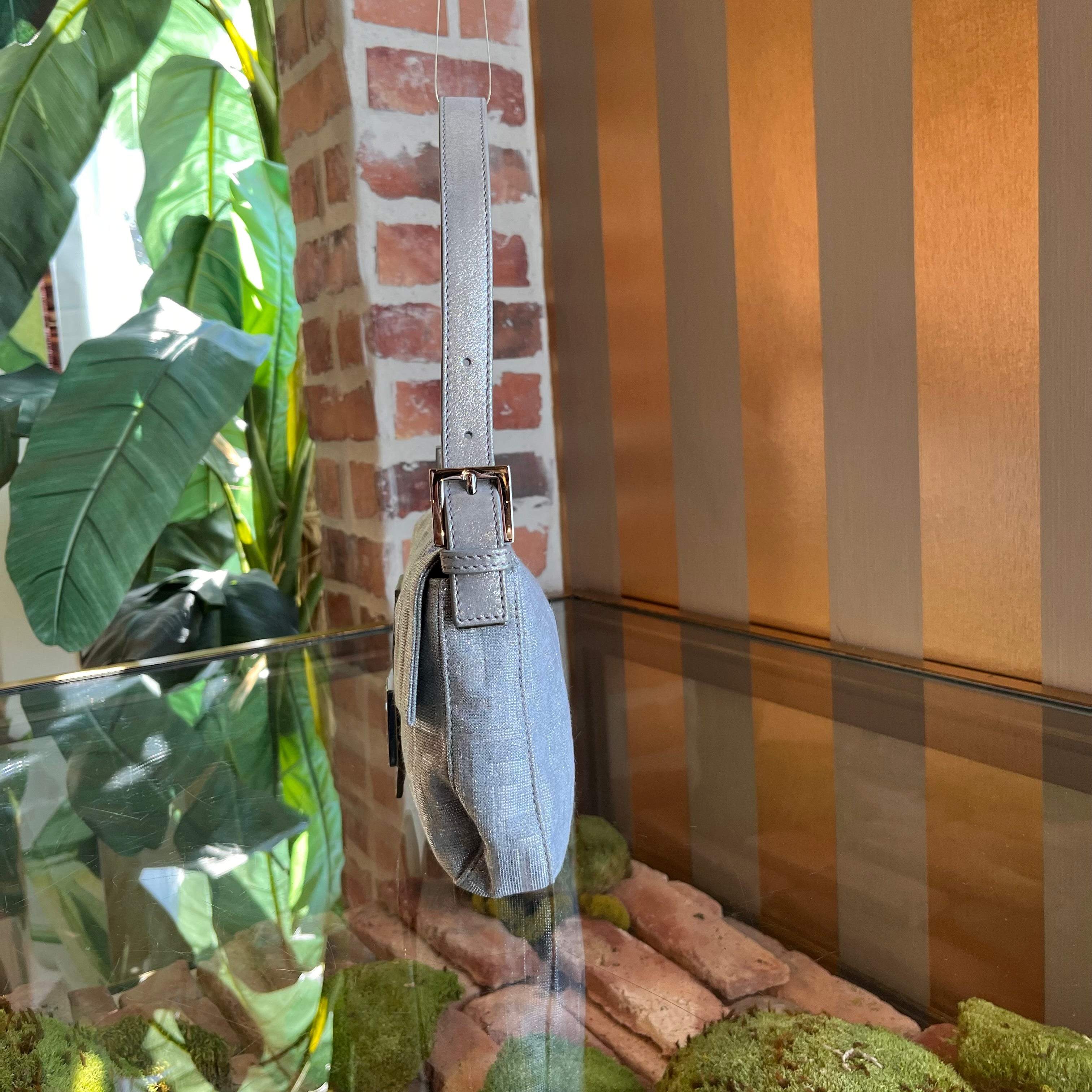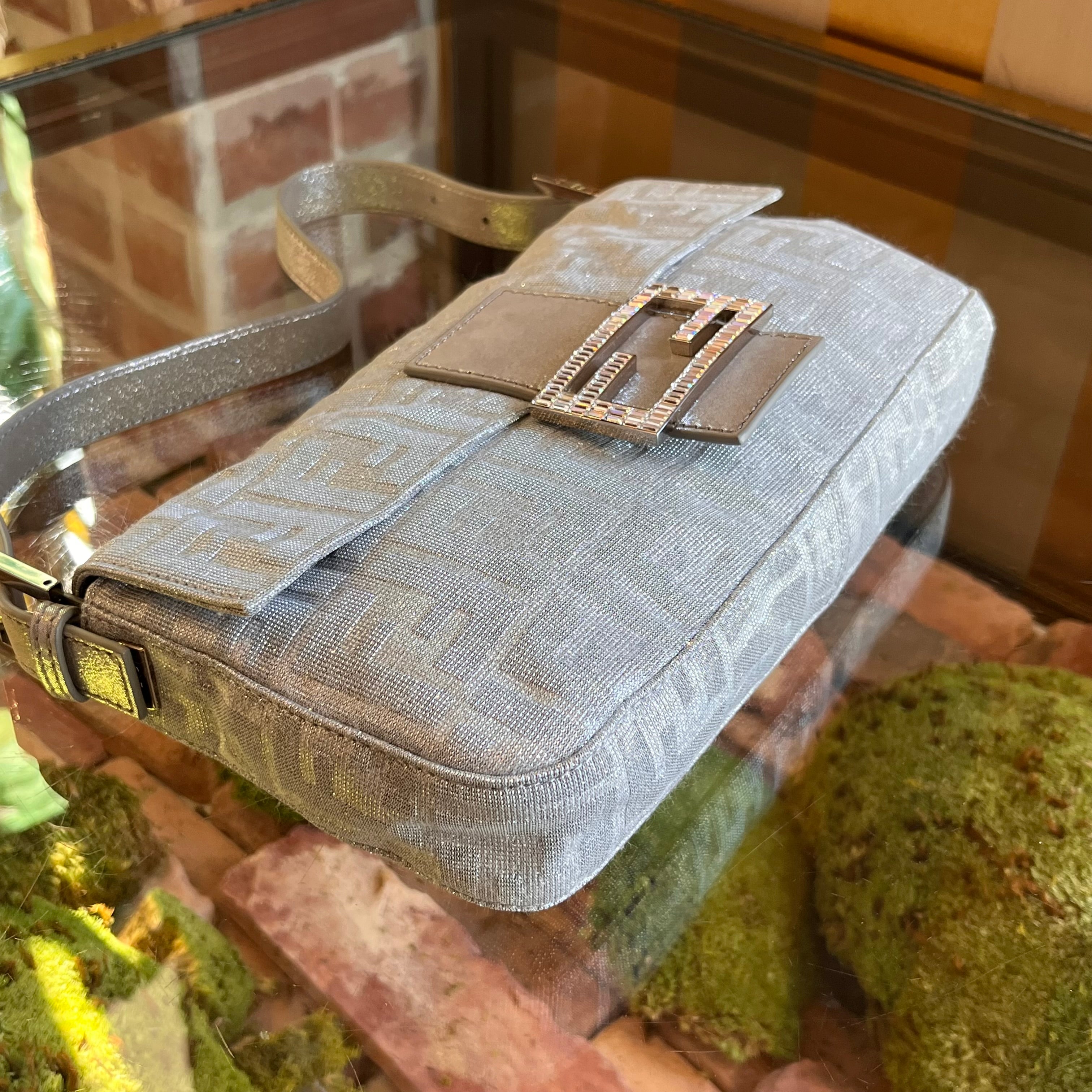 FENDI Baguette Metallic Zucca Canvas Shoulder Bag