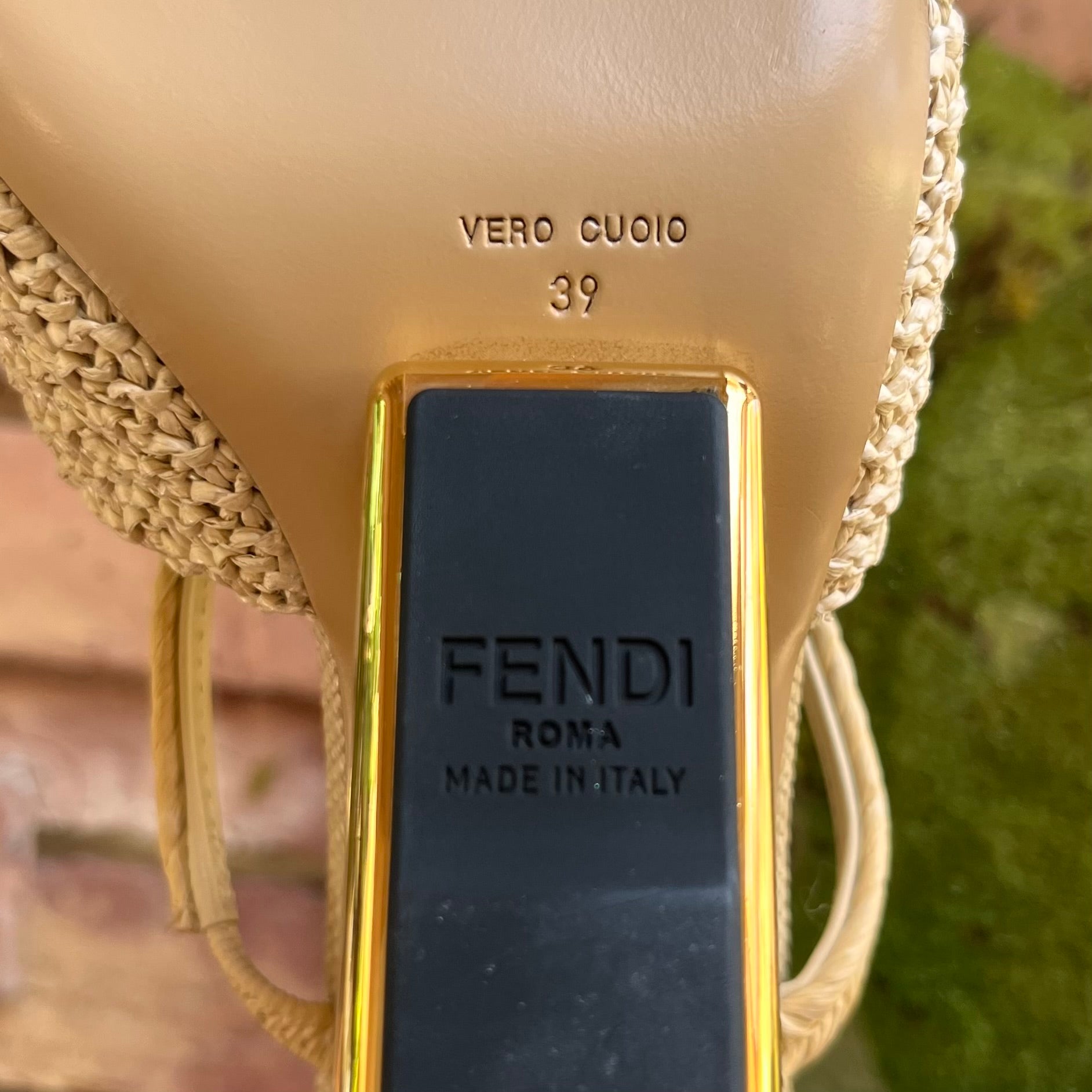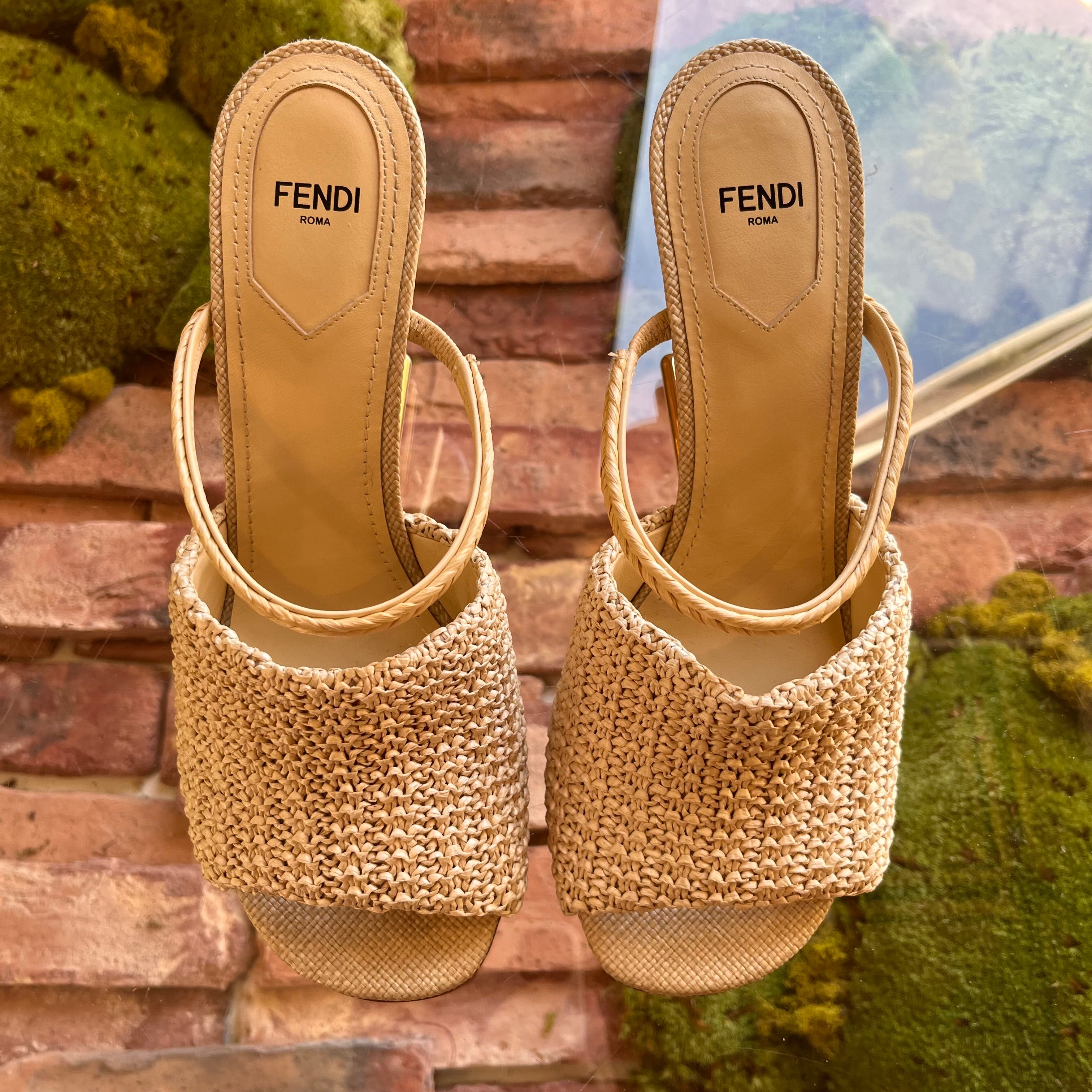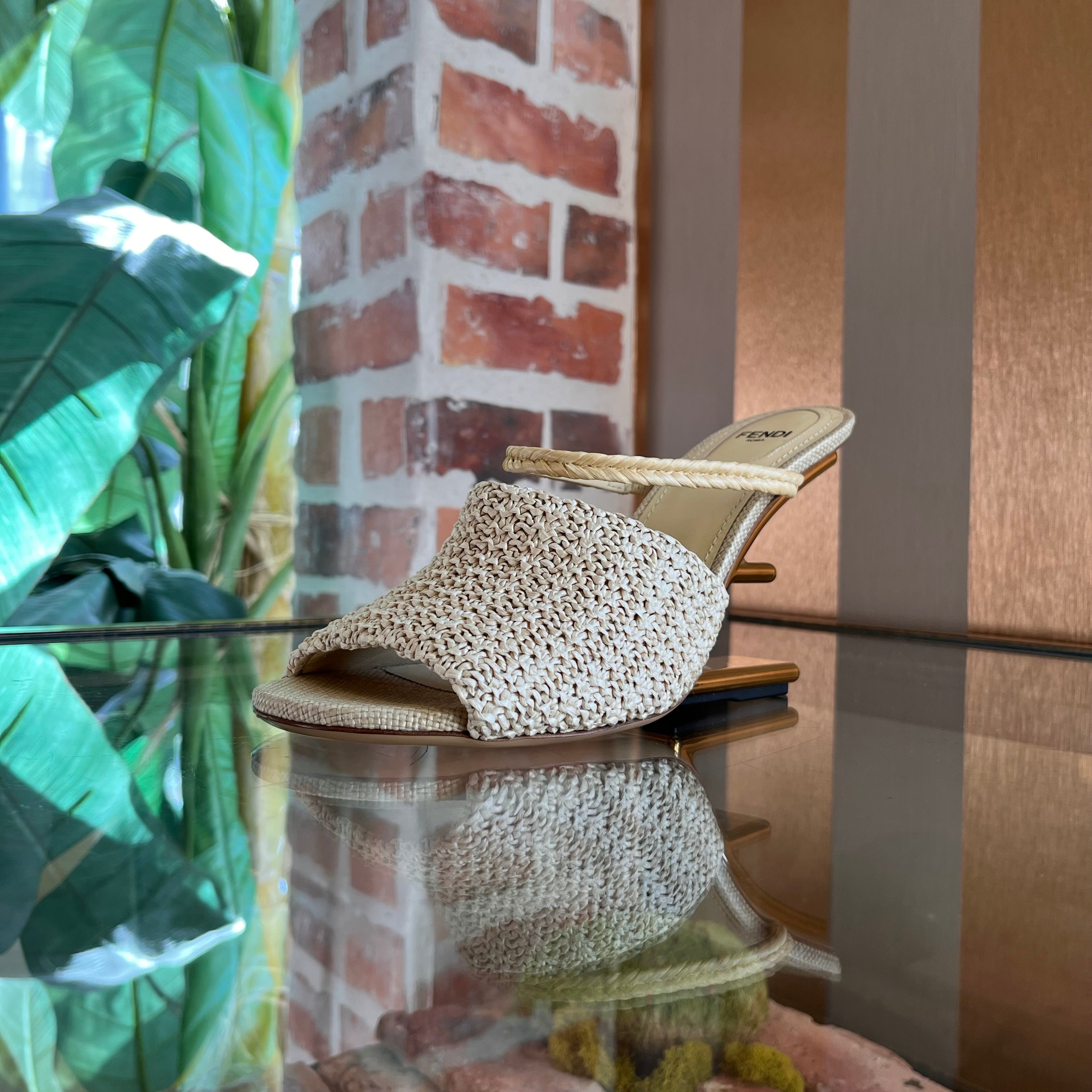 FENDI Woven Raffia Beige First Sandal Heels SZ 39 (US 9)