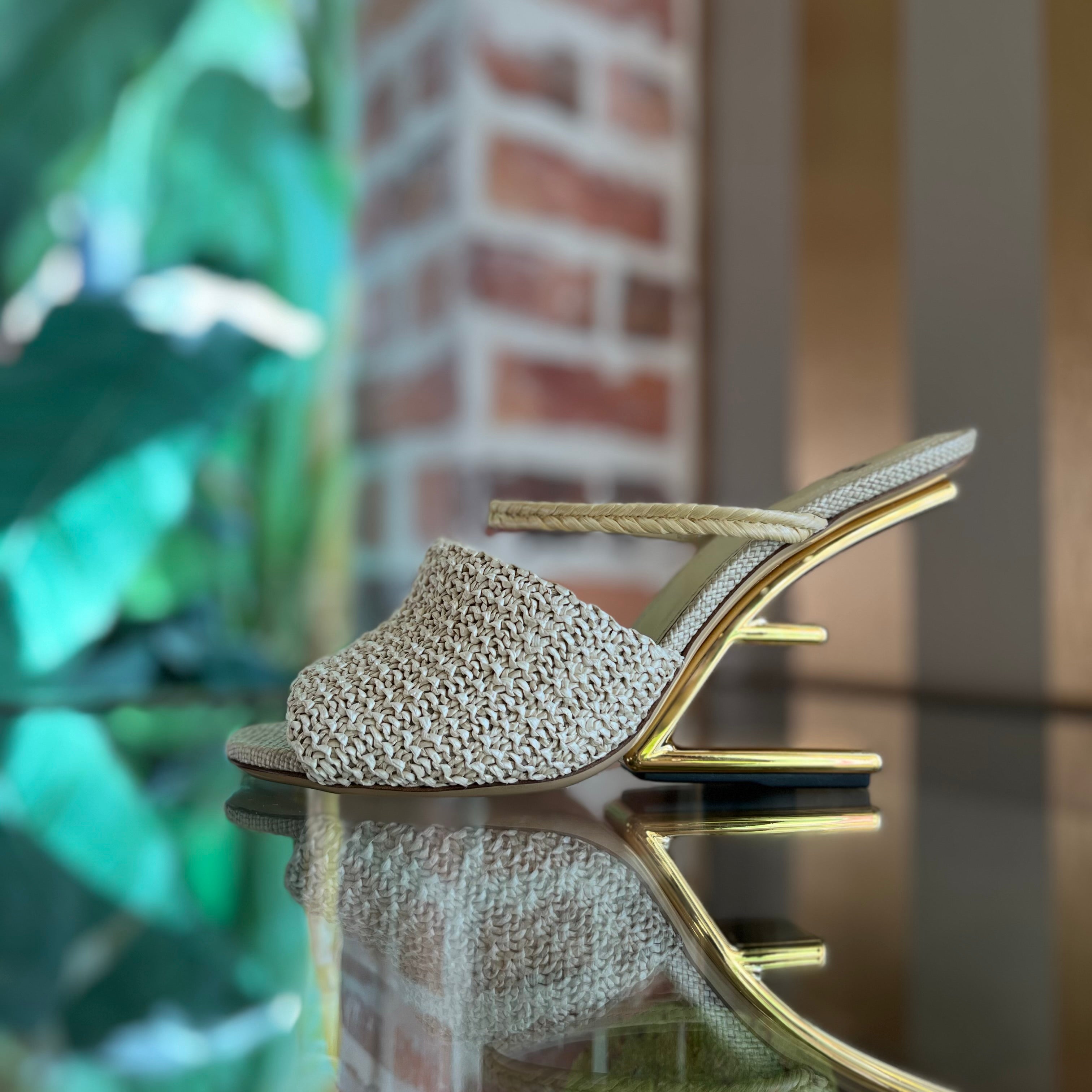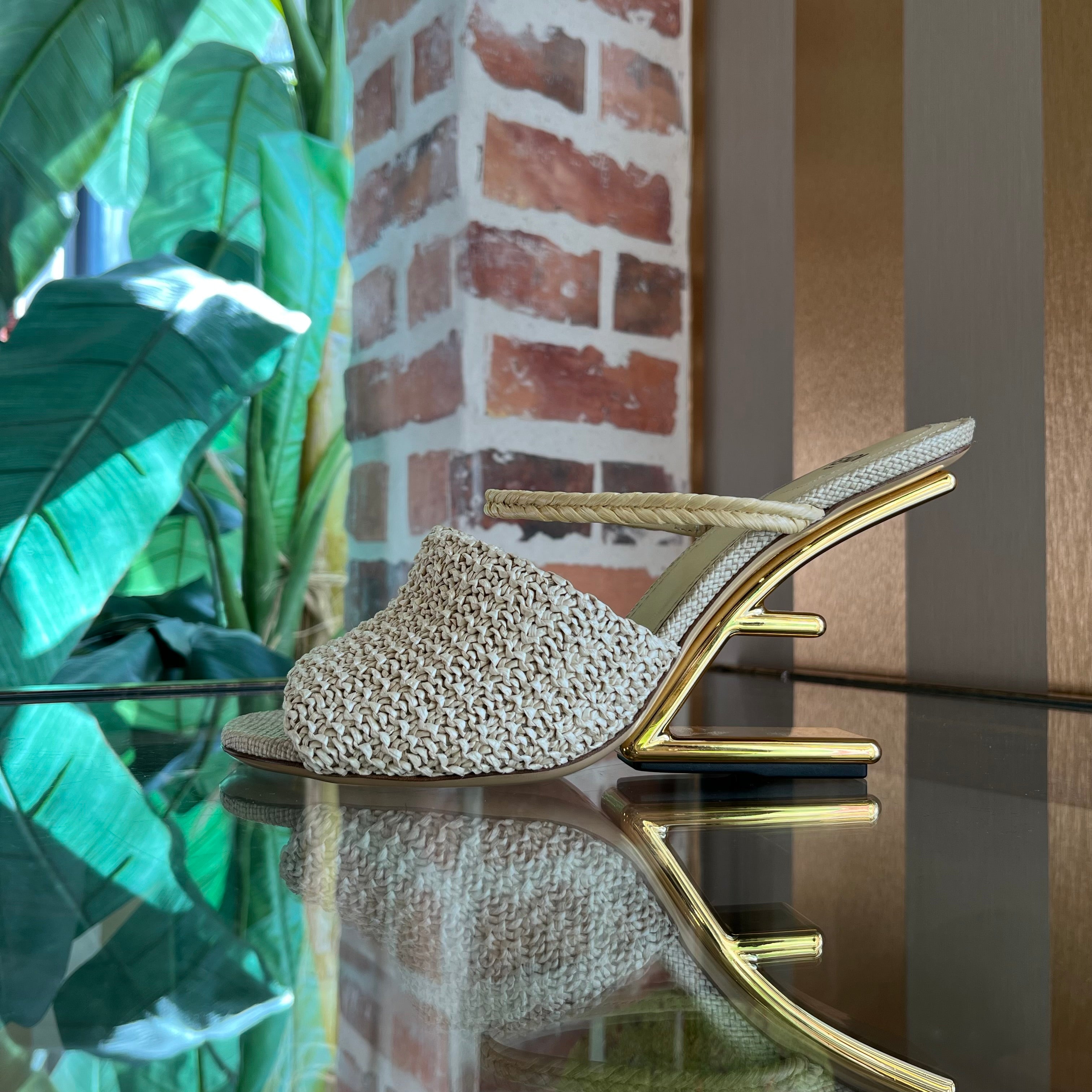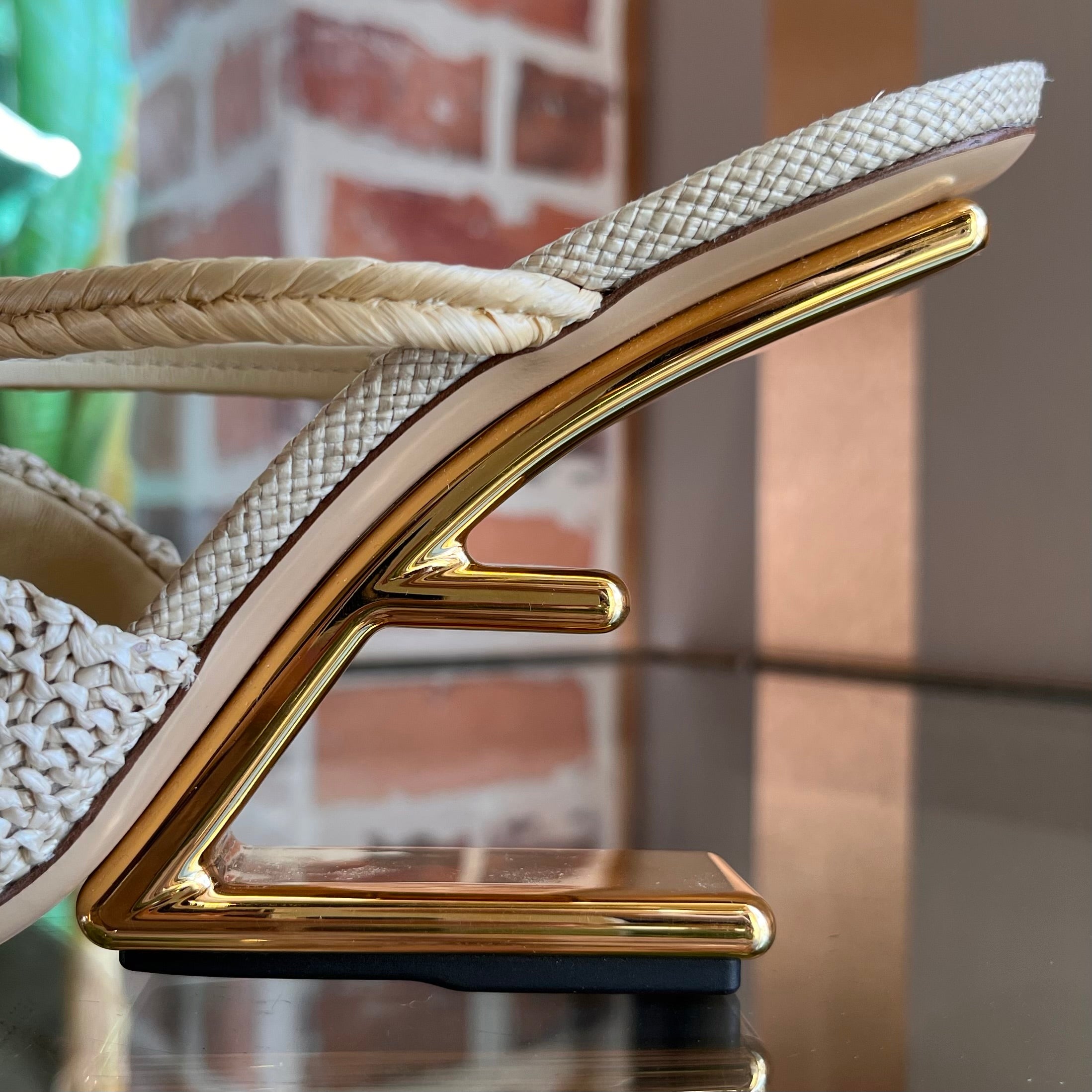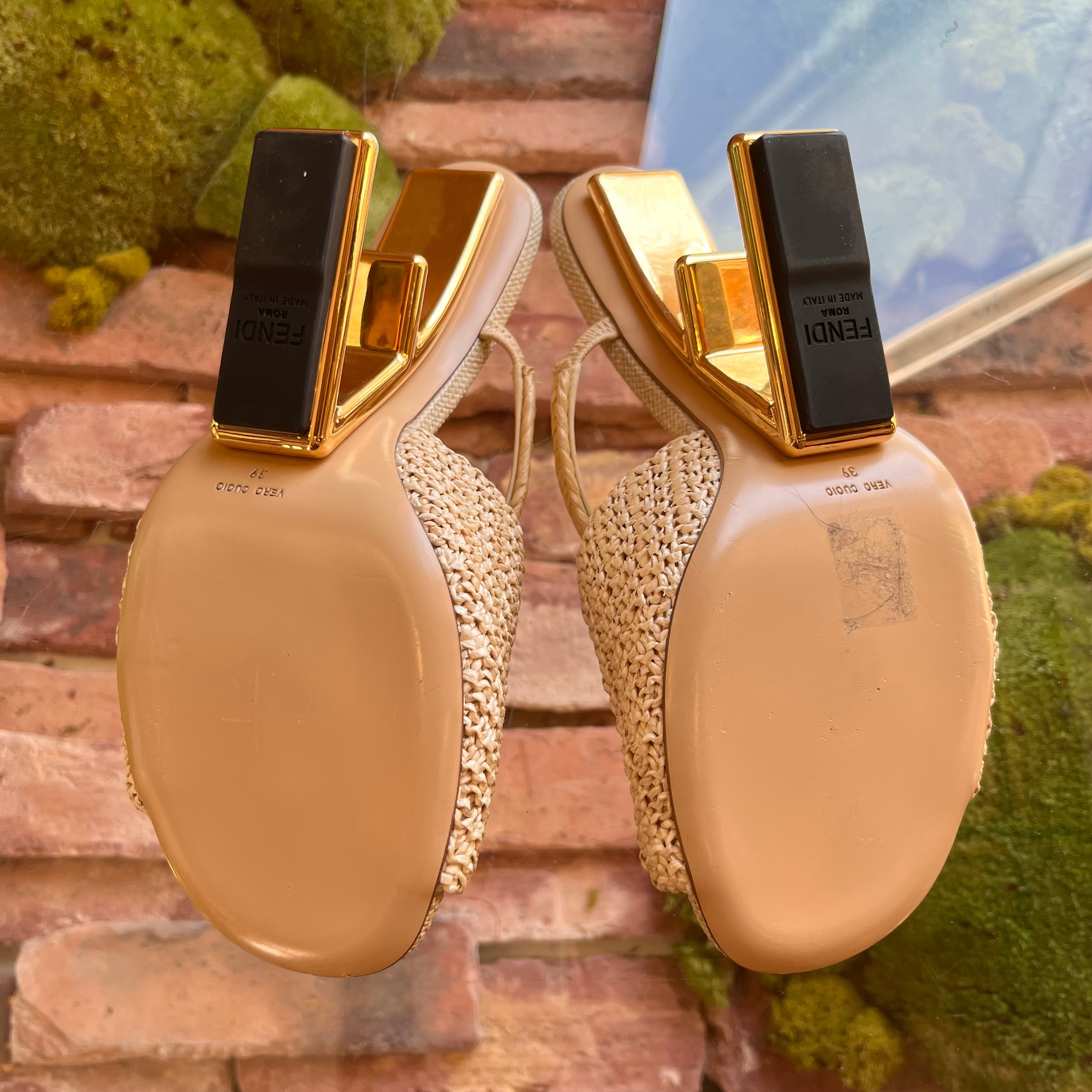 FENDI Woven Raffia Beige First Sandal Heels SZ 39 (US 9)