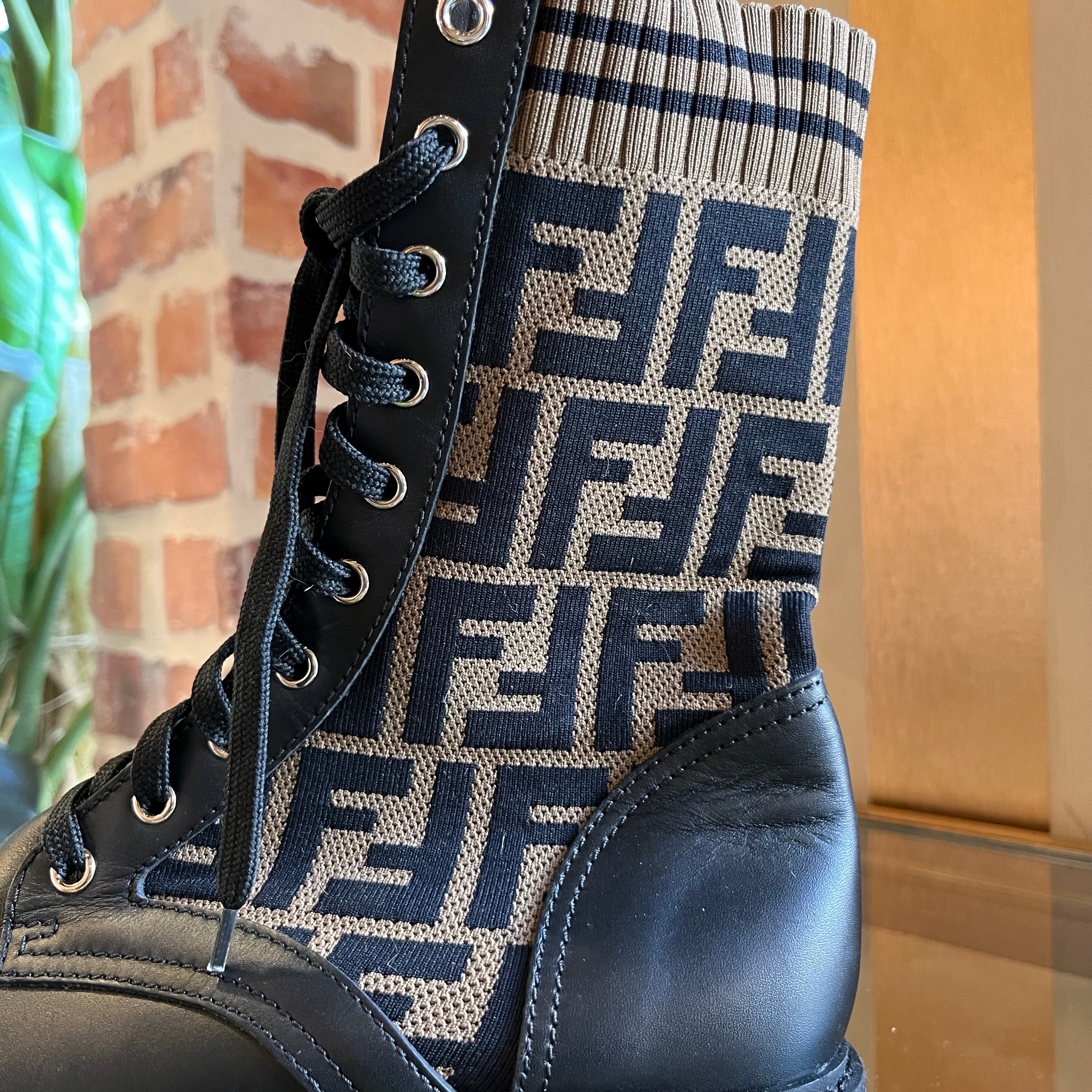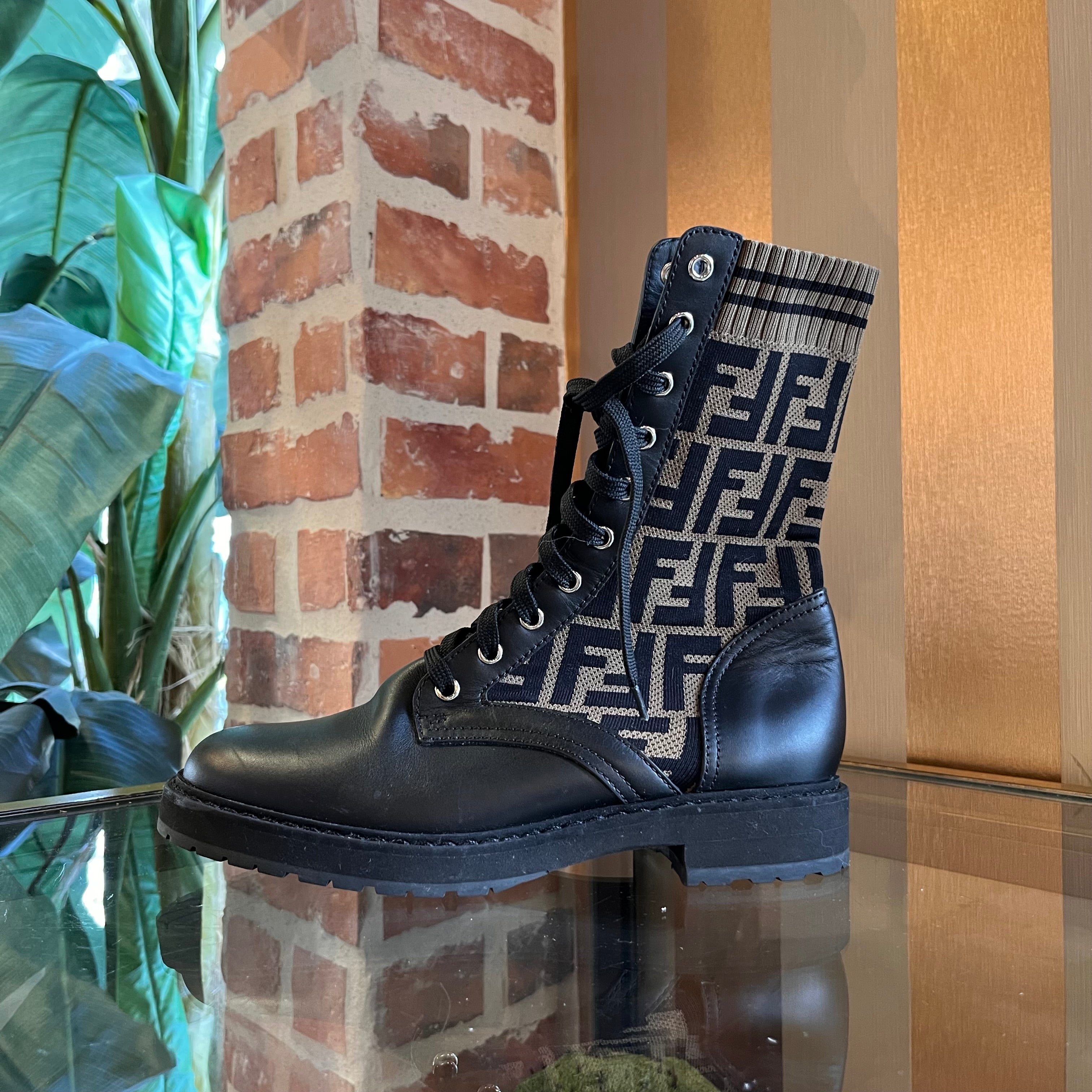 FENDI Black/Brown Zucca FF Combat Boots SZ 37.5 (US 7.5)
