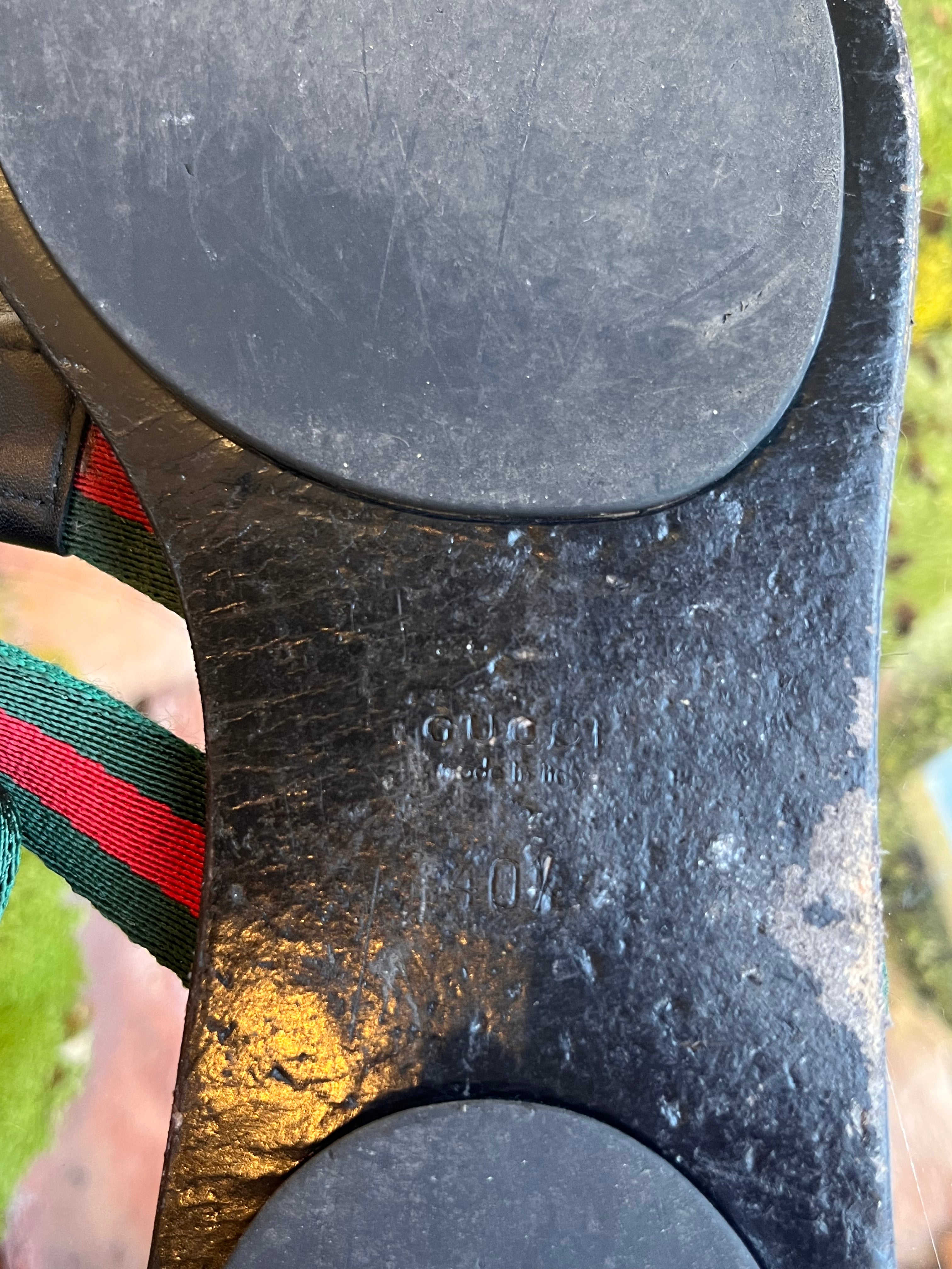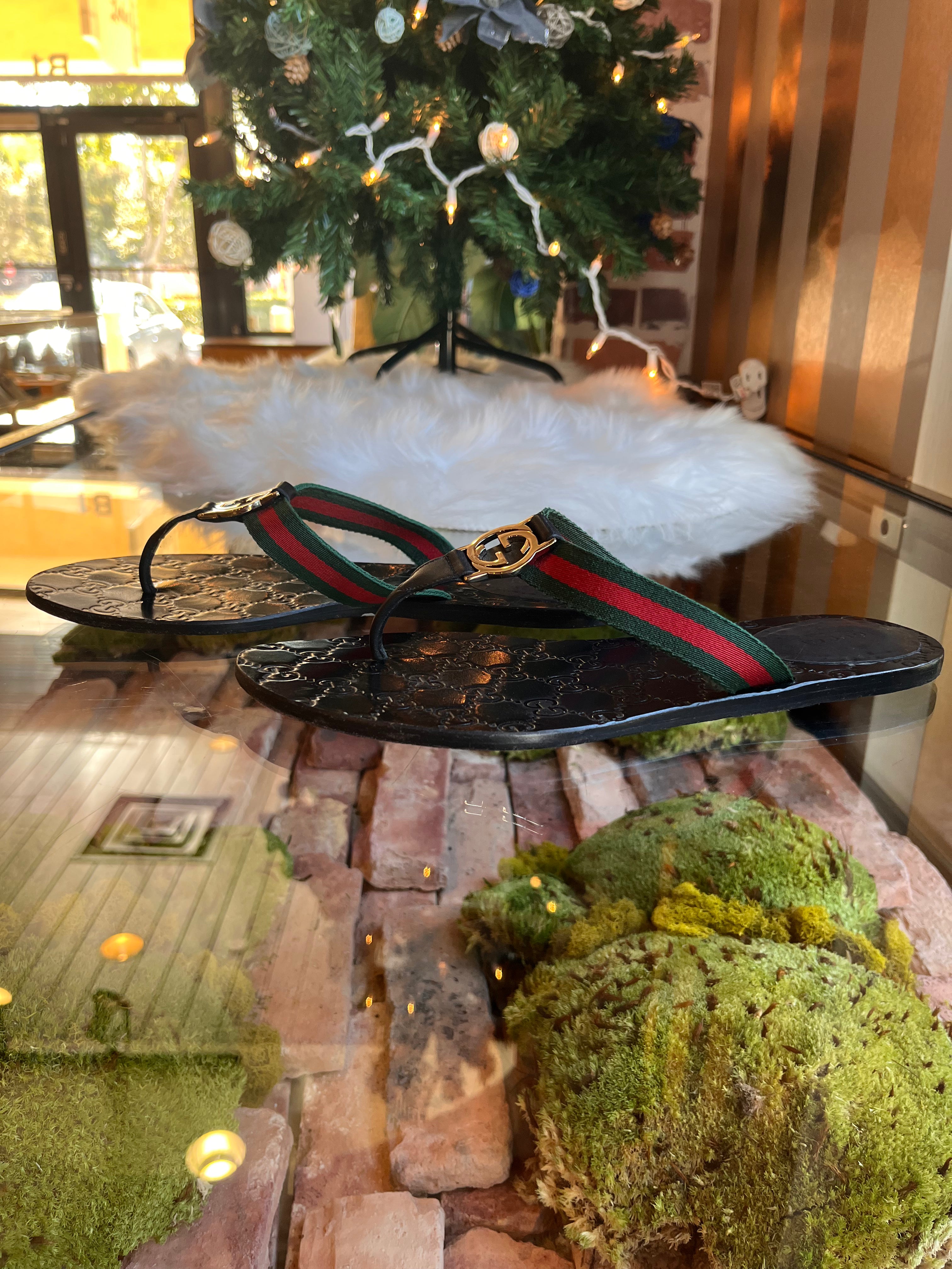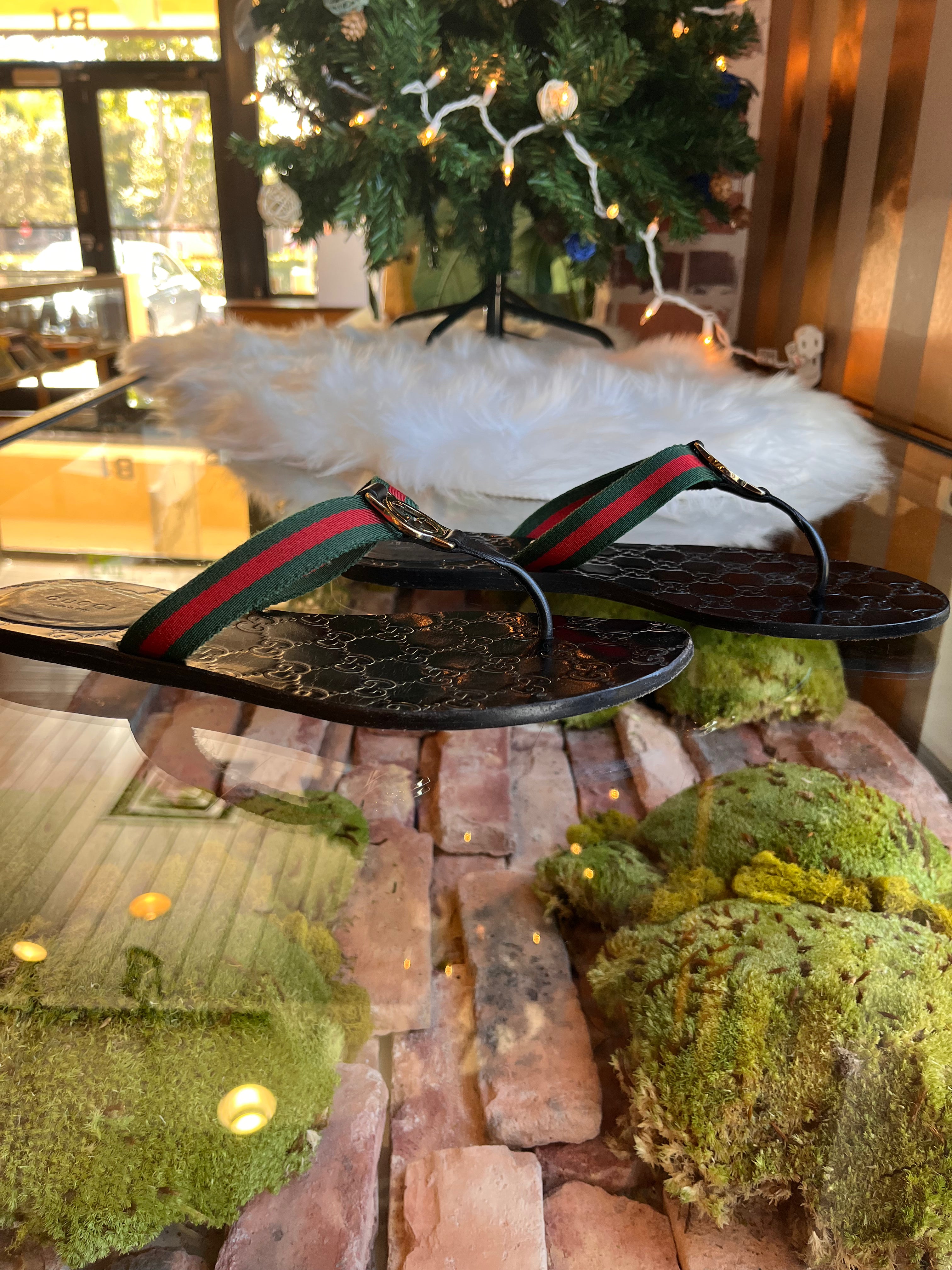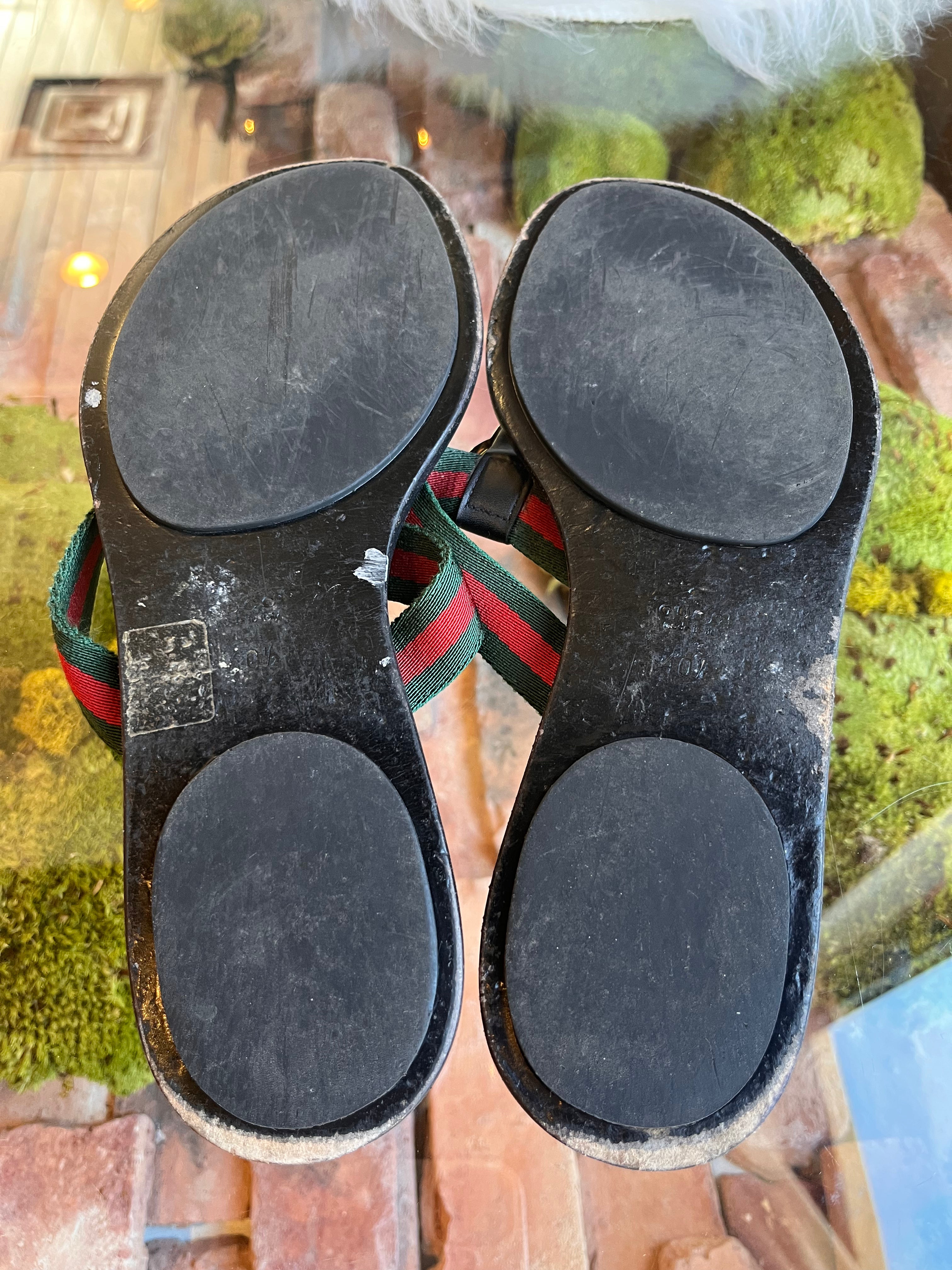 GUCCI Black Guccissima Red & Green Striped Flip flops SZ 40.5