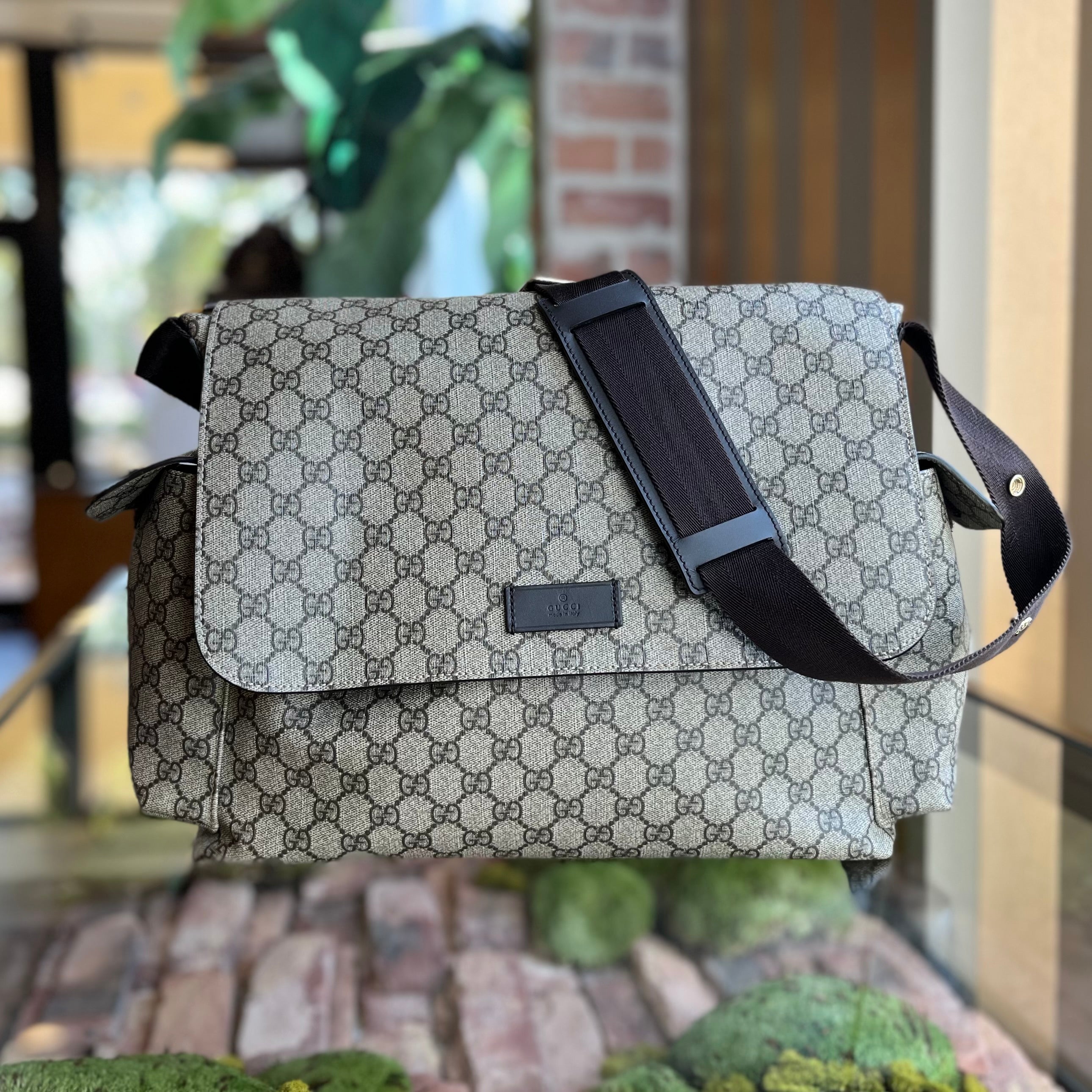 GUCCI Beige Ebony GG Supreme Canvas Diaper Bag
