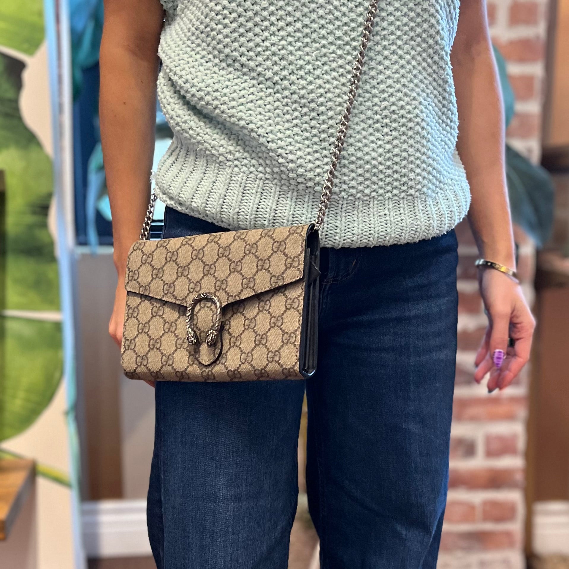 GUCCI Dionysus GG Web Canvas Wallet On Chain Crossbody