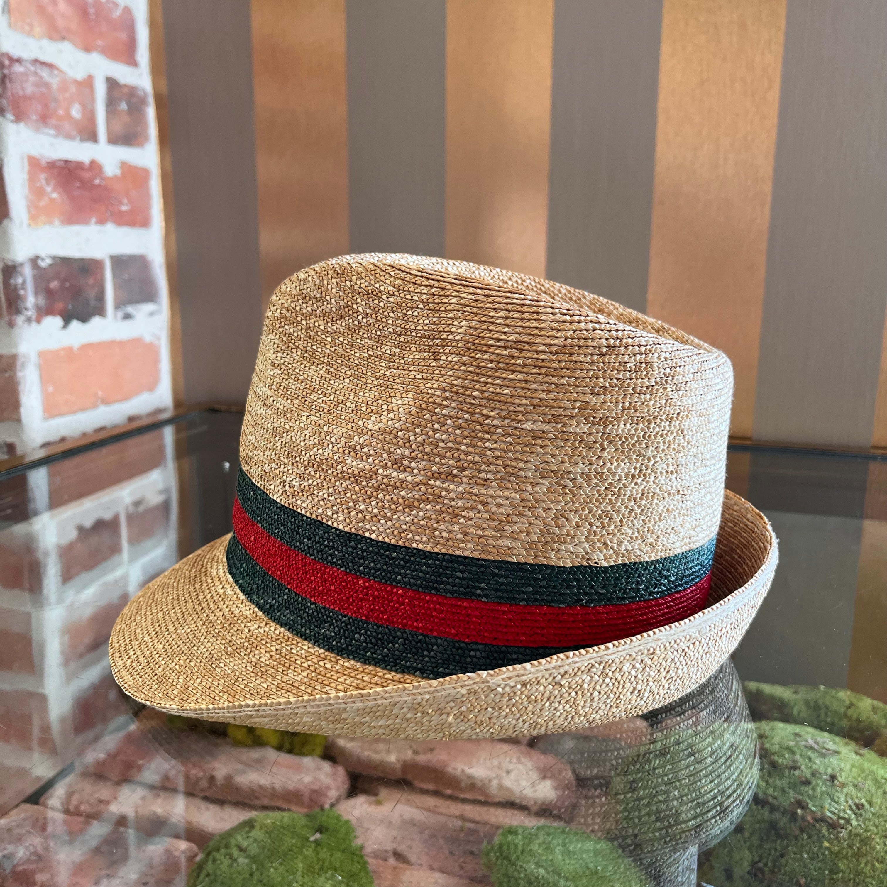 GUCCI Raffia Web Stripe Fedora Hat SZ 57 (M)