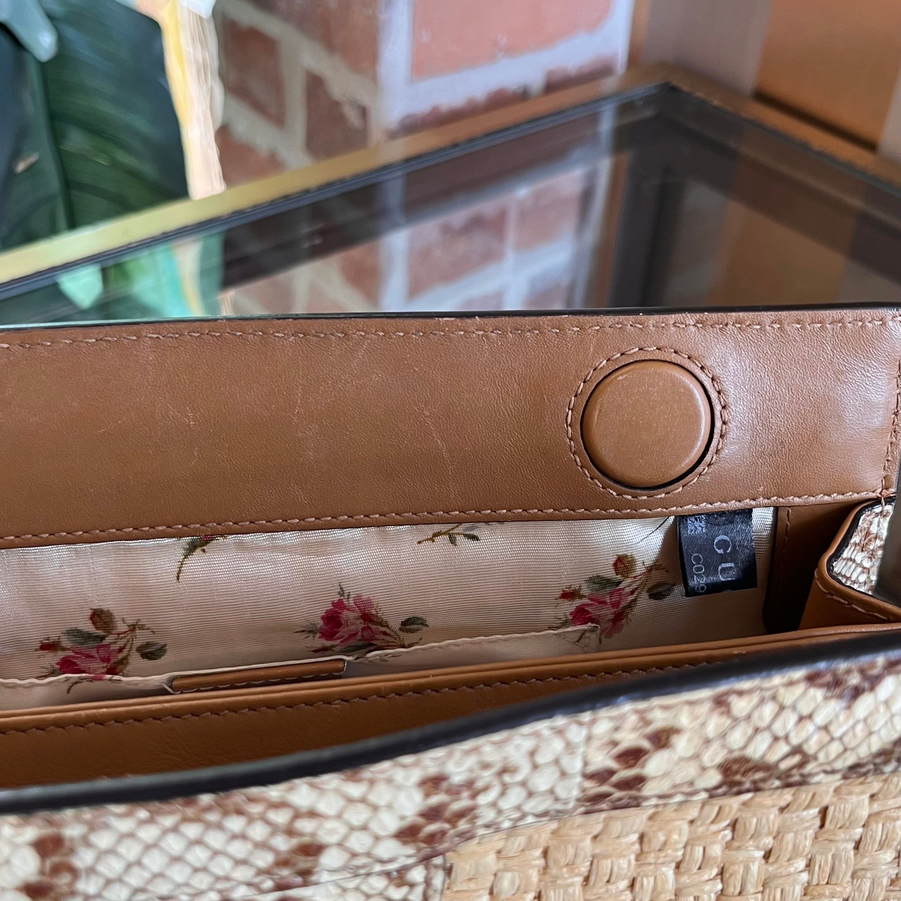 GUCCI Ophidia Small Raffia Snakeskin Chain Shoulder Bag