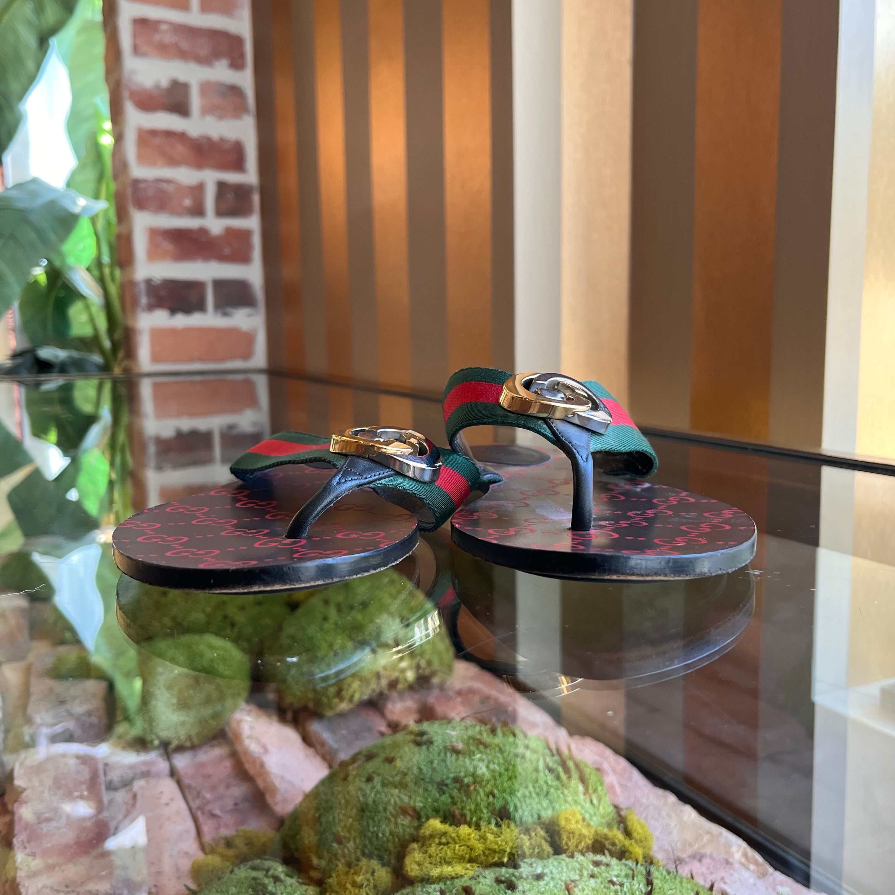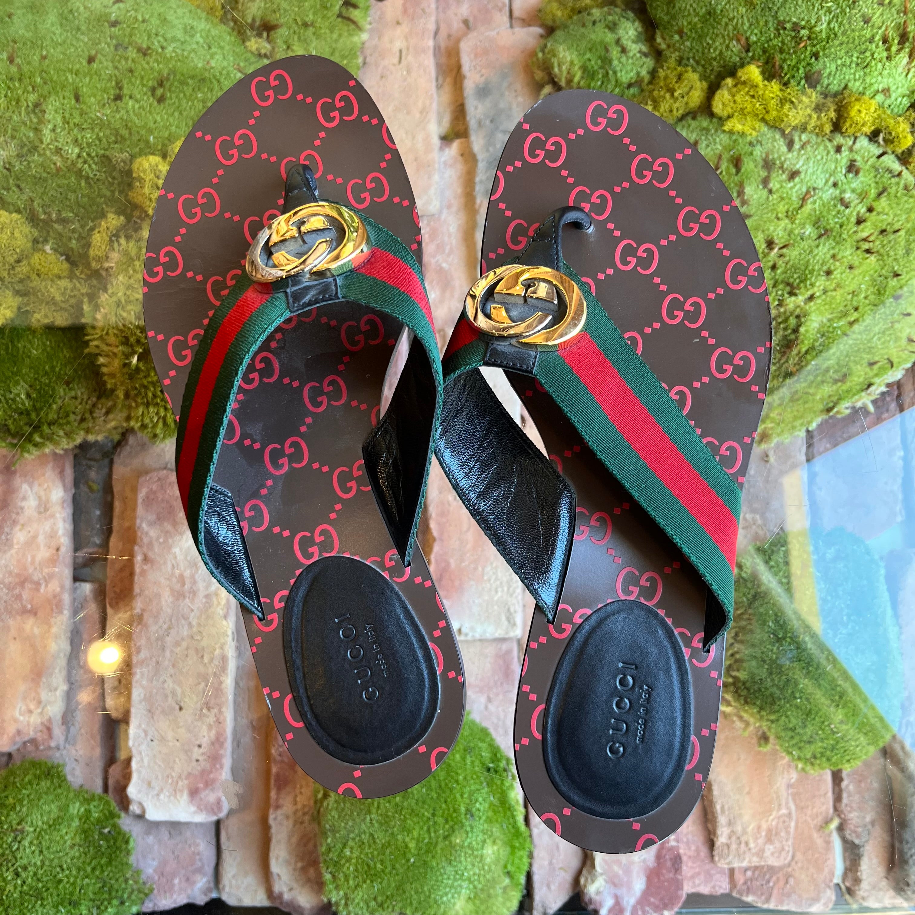 GUCCI Vintage Web Interlocking G Flat Thong Sandals SZ39.5(9.5US)