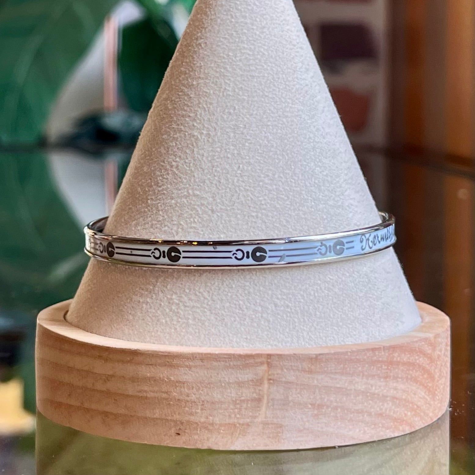 HERMES Fantaisie d'Etriers White Enamel Bangle