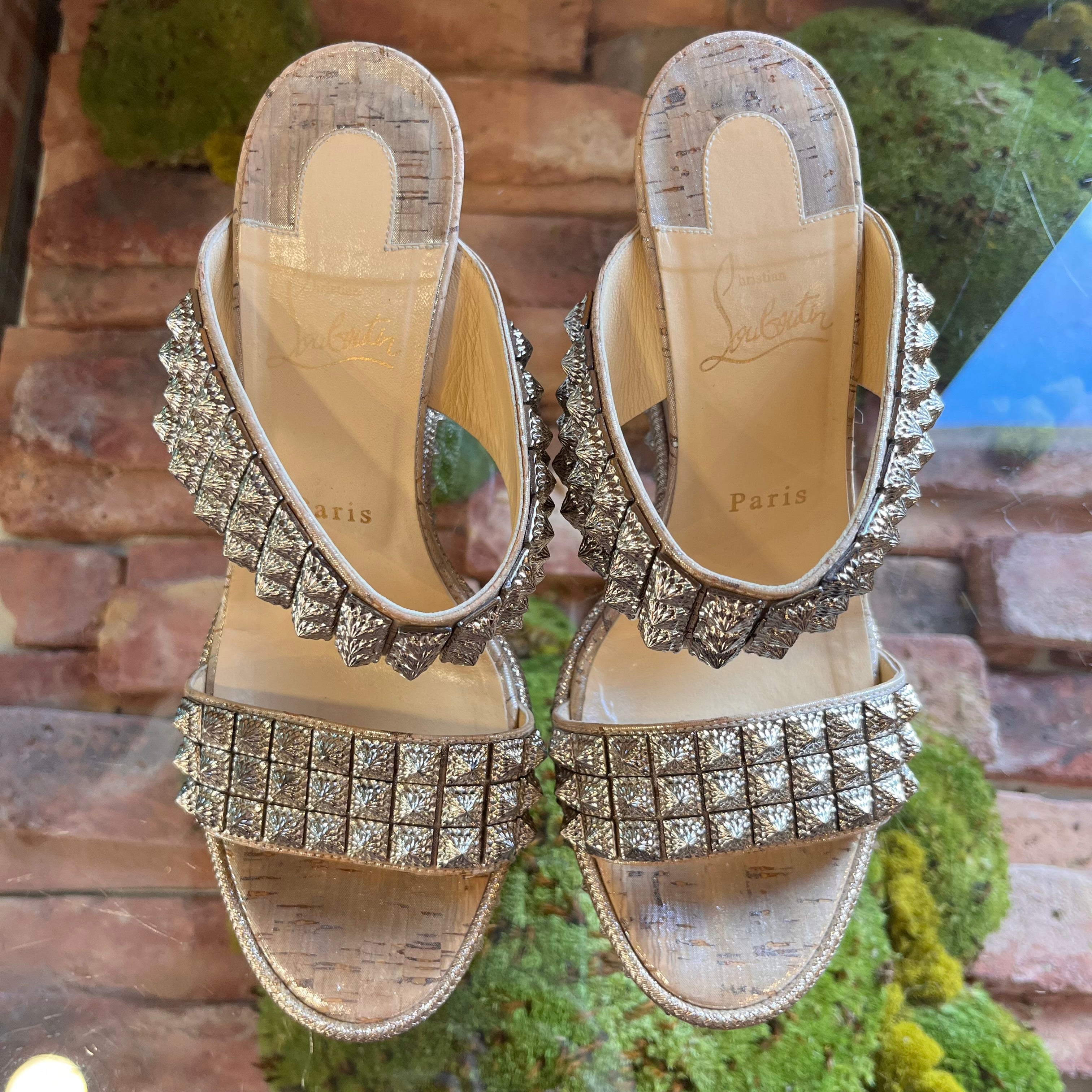 CHRISTIAN LOUBOUTIN Silver Studded Platform Wedges Heels SZ 39 (US 9)