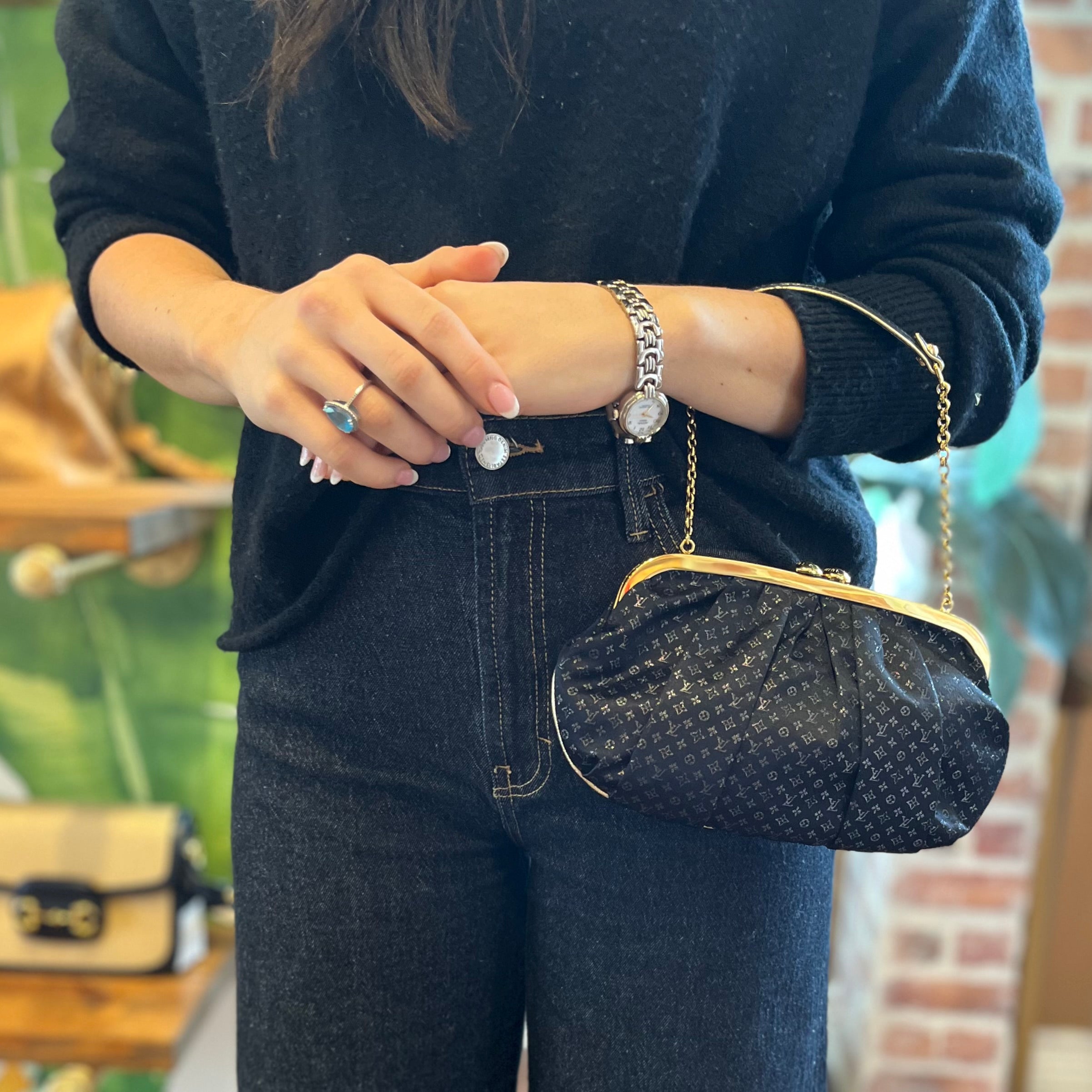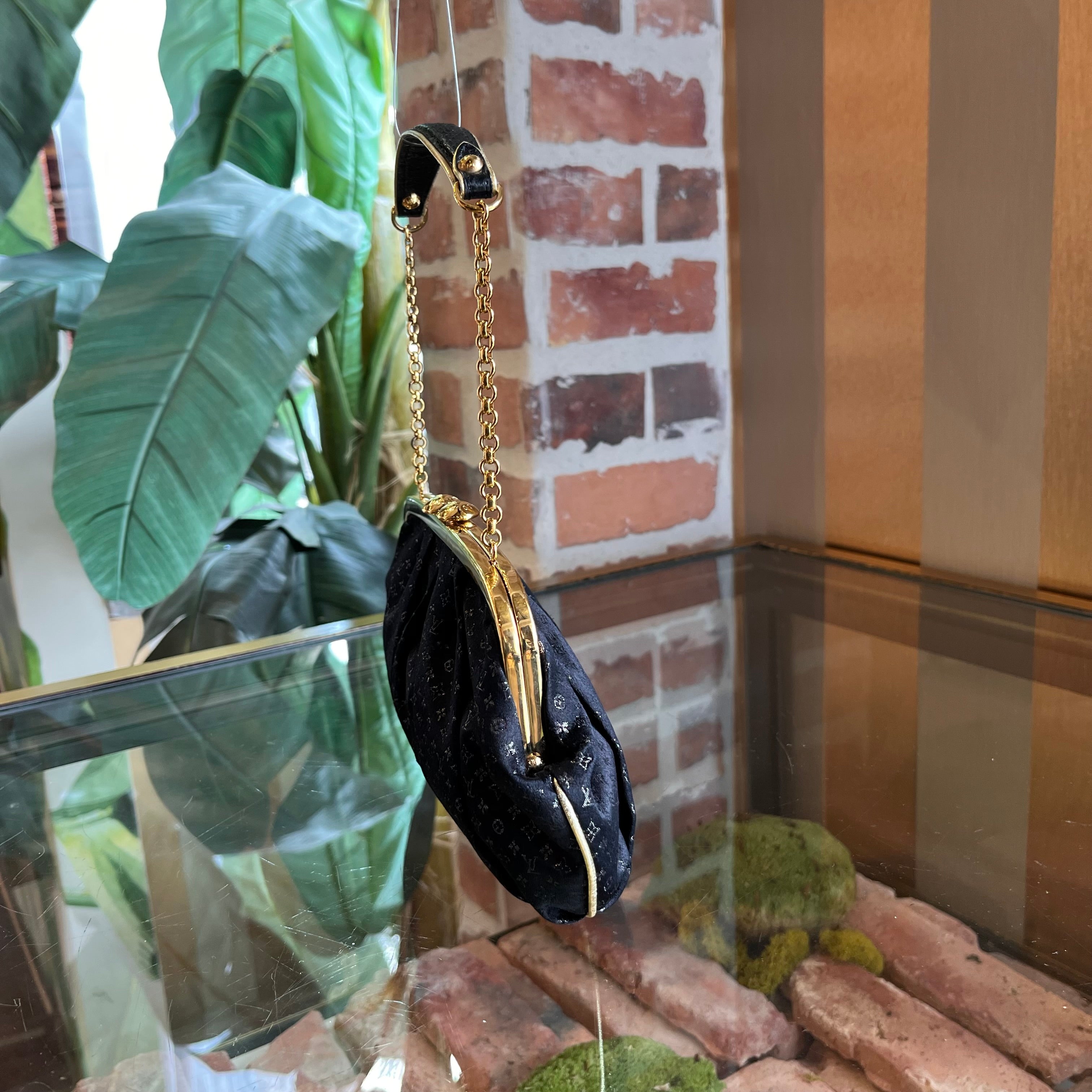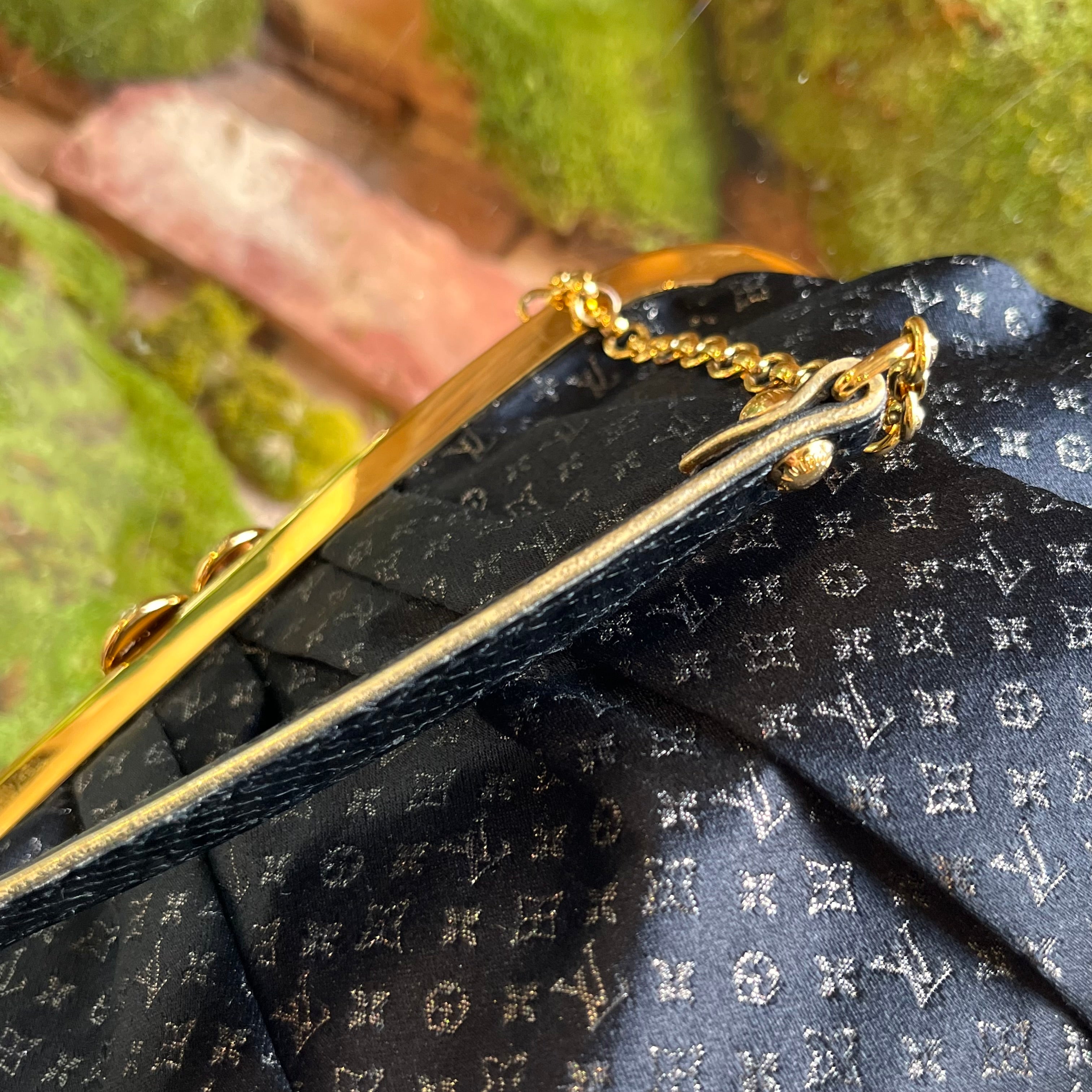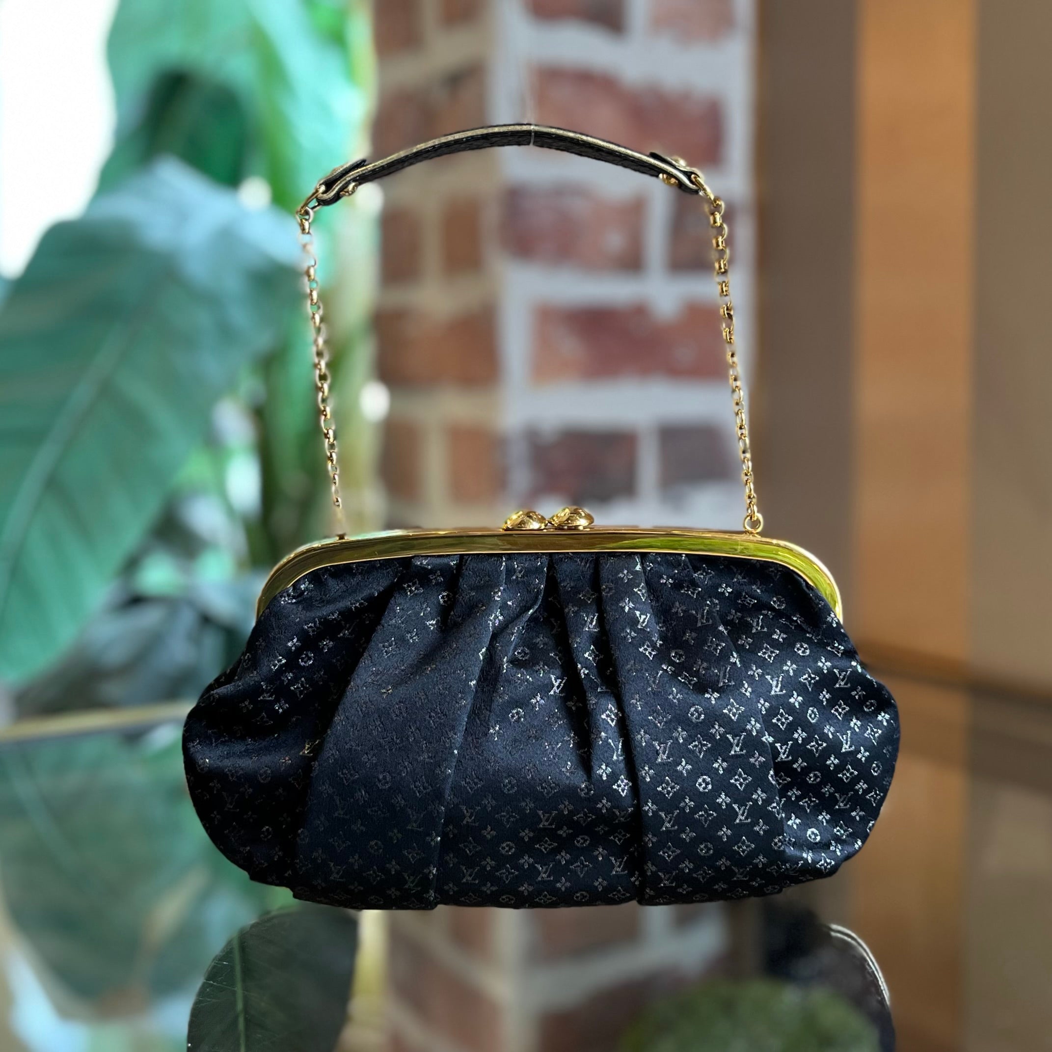 LOUIS VUITTON Aumonière Mini Lin Black Satin Evening Bag