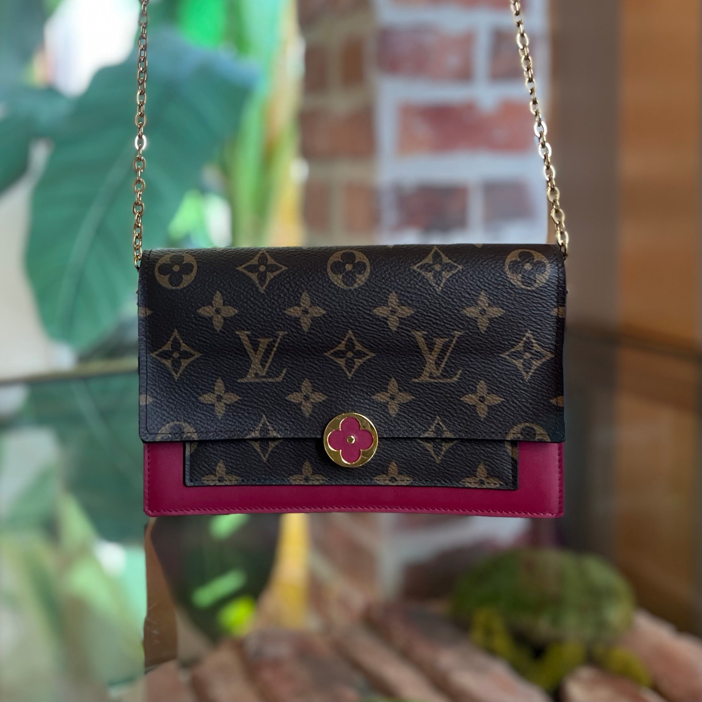 LOUIS VUITTON Flore Wallet Fuchsia Monogram Chain Crossbody