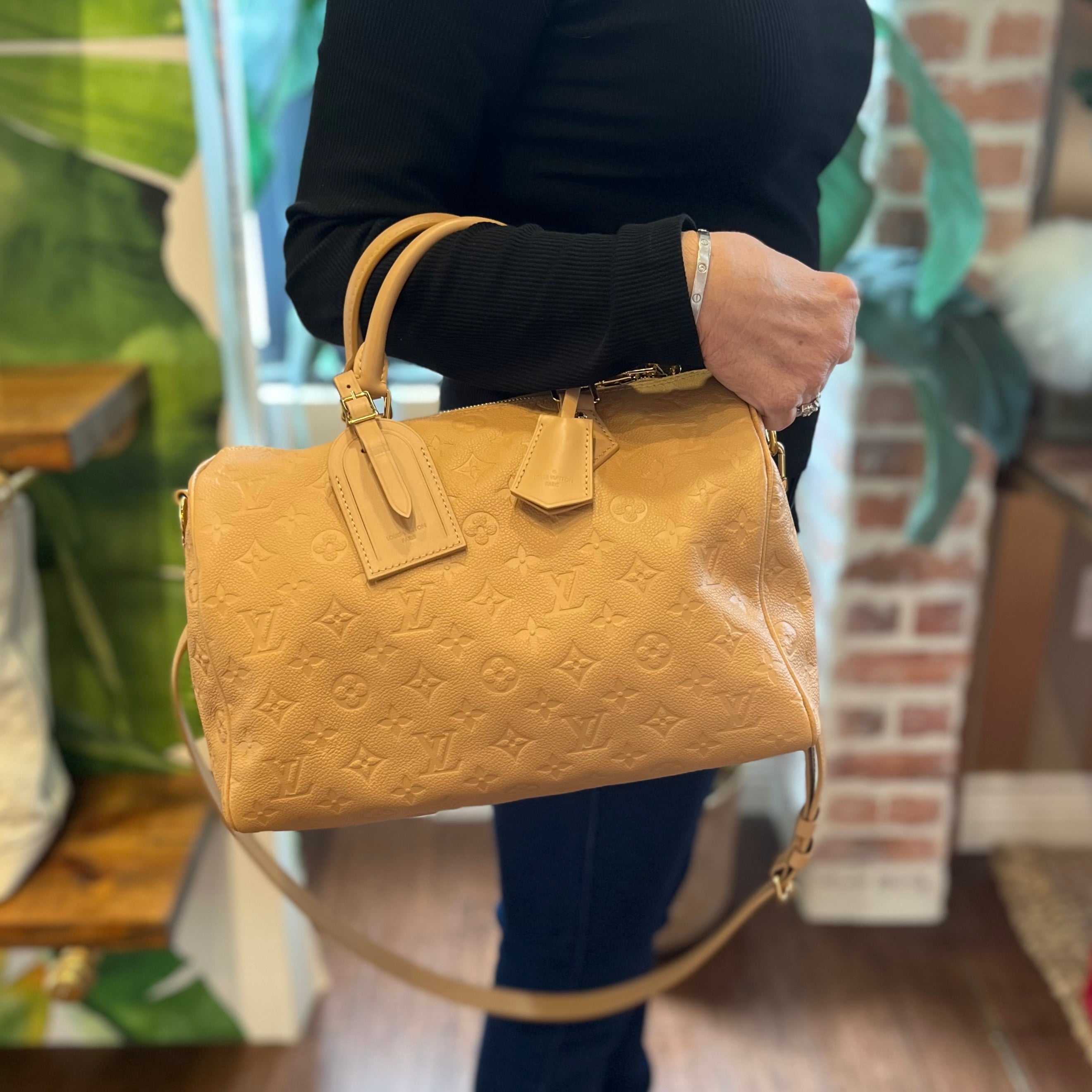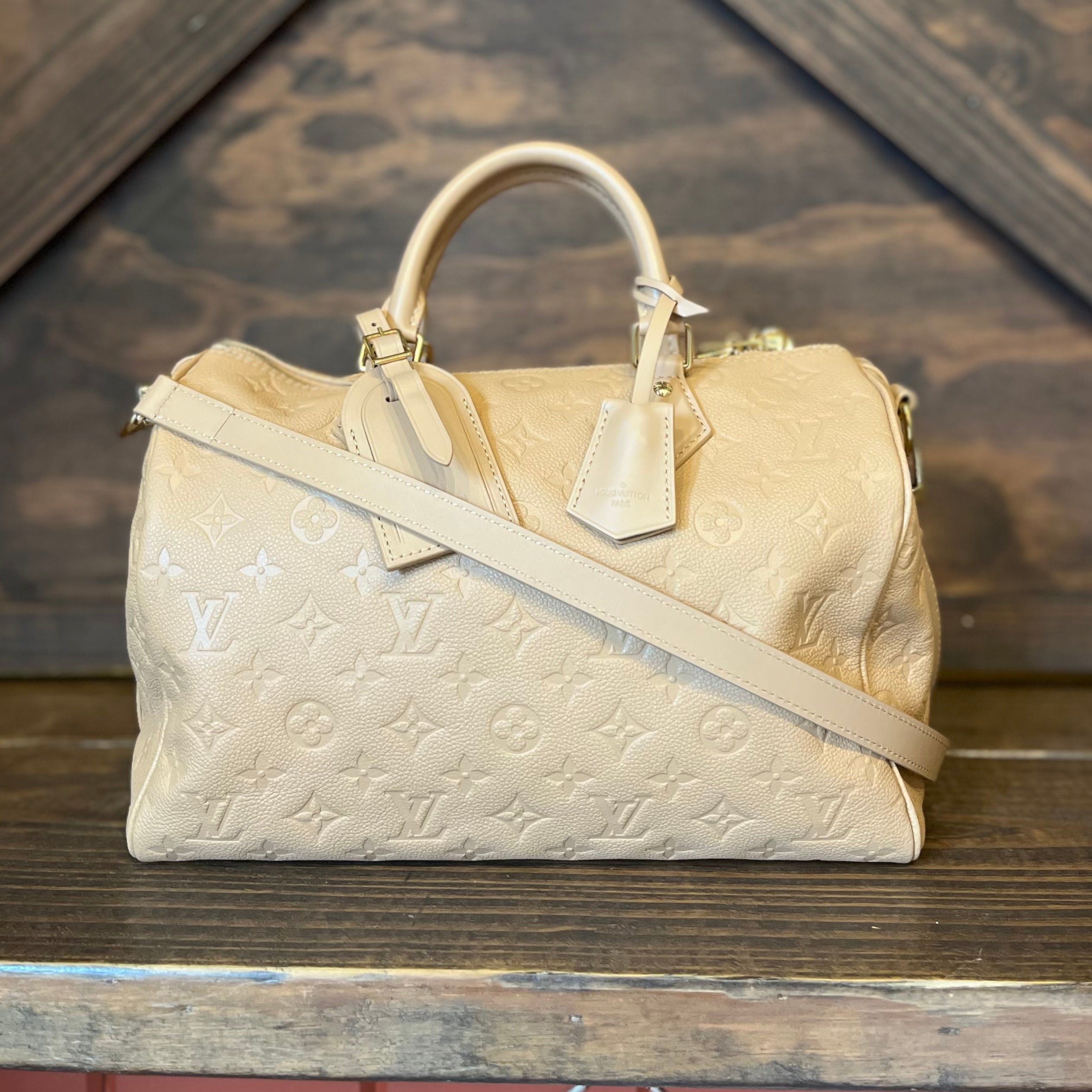 LOUIS VUITTON Soft Speedy Bandouliere 30 Arizona Monogram Empreinte Leather Satchel Bag