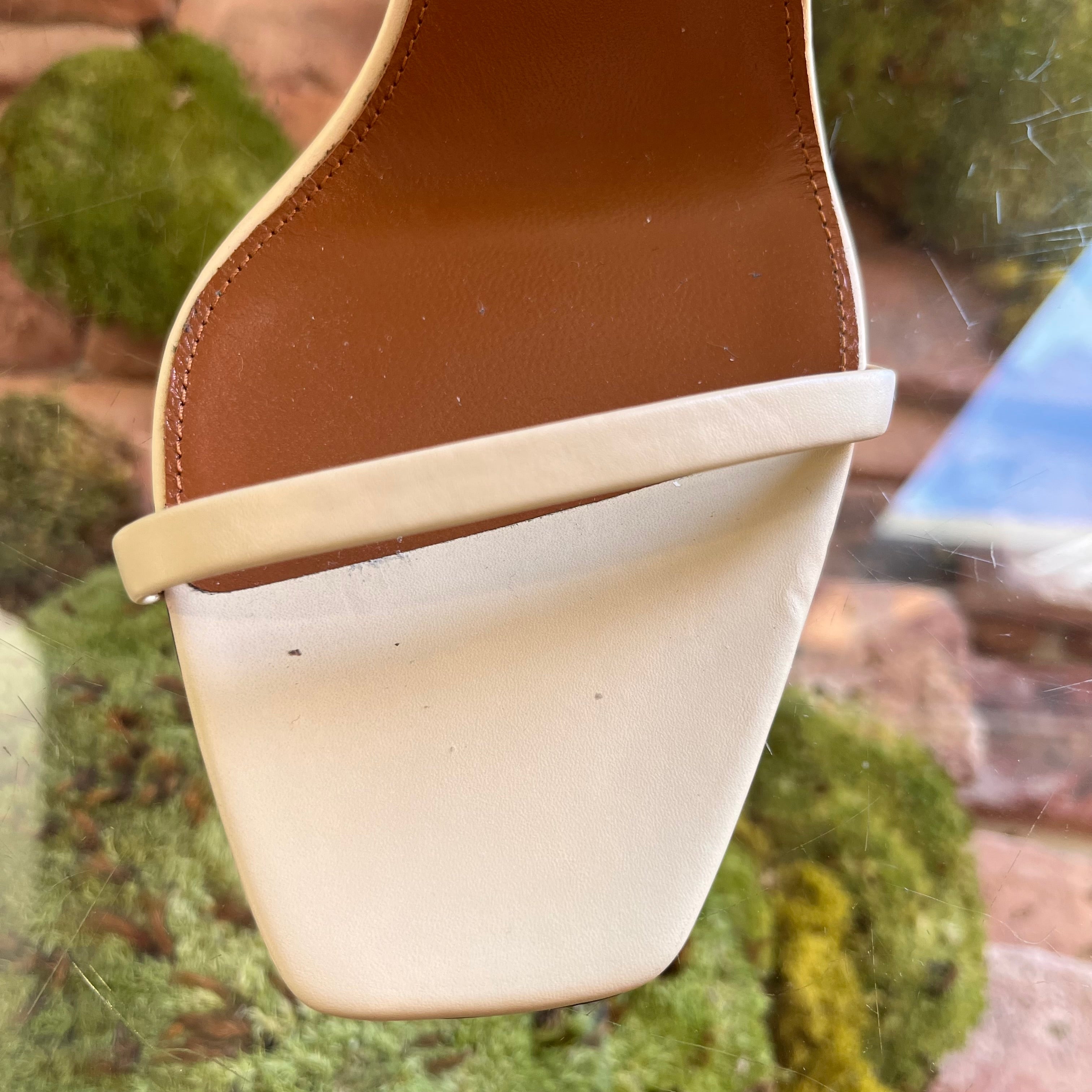 • Exterior: Very gentle wear to soles and heel tip. Creasing on backside of ankle strap. Color is clear and vibrant. Leather is smooth and supple. Overall very good condition.
