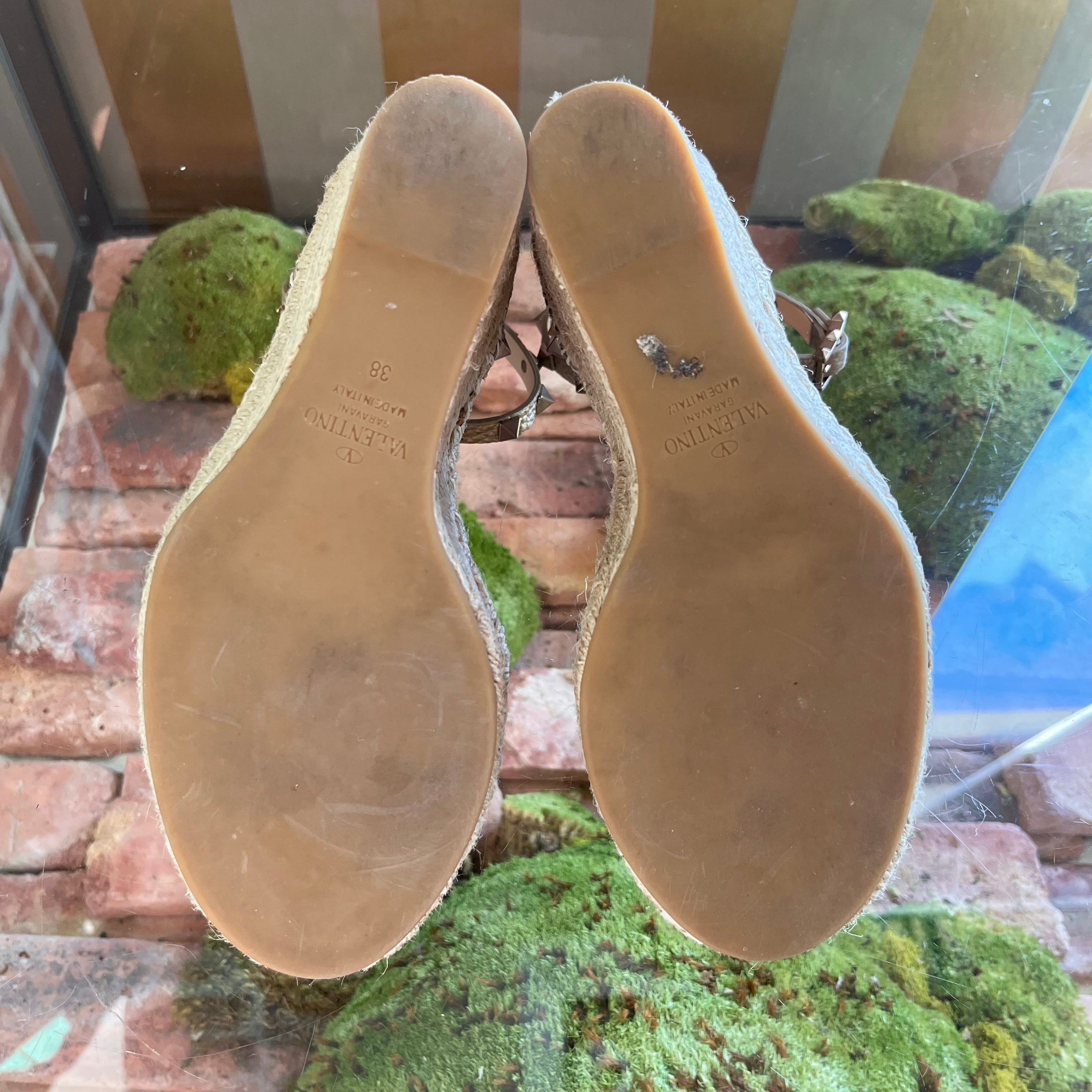 VALENTINO Metallic Double Rockstud Espadrilles Wedges SZ 38 (US 8)