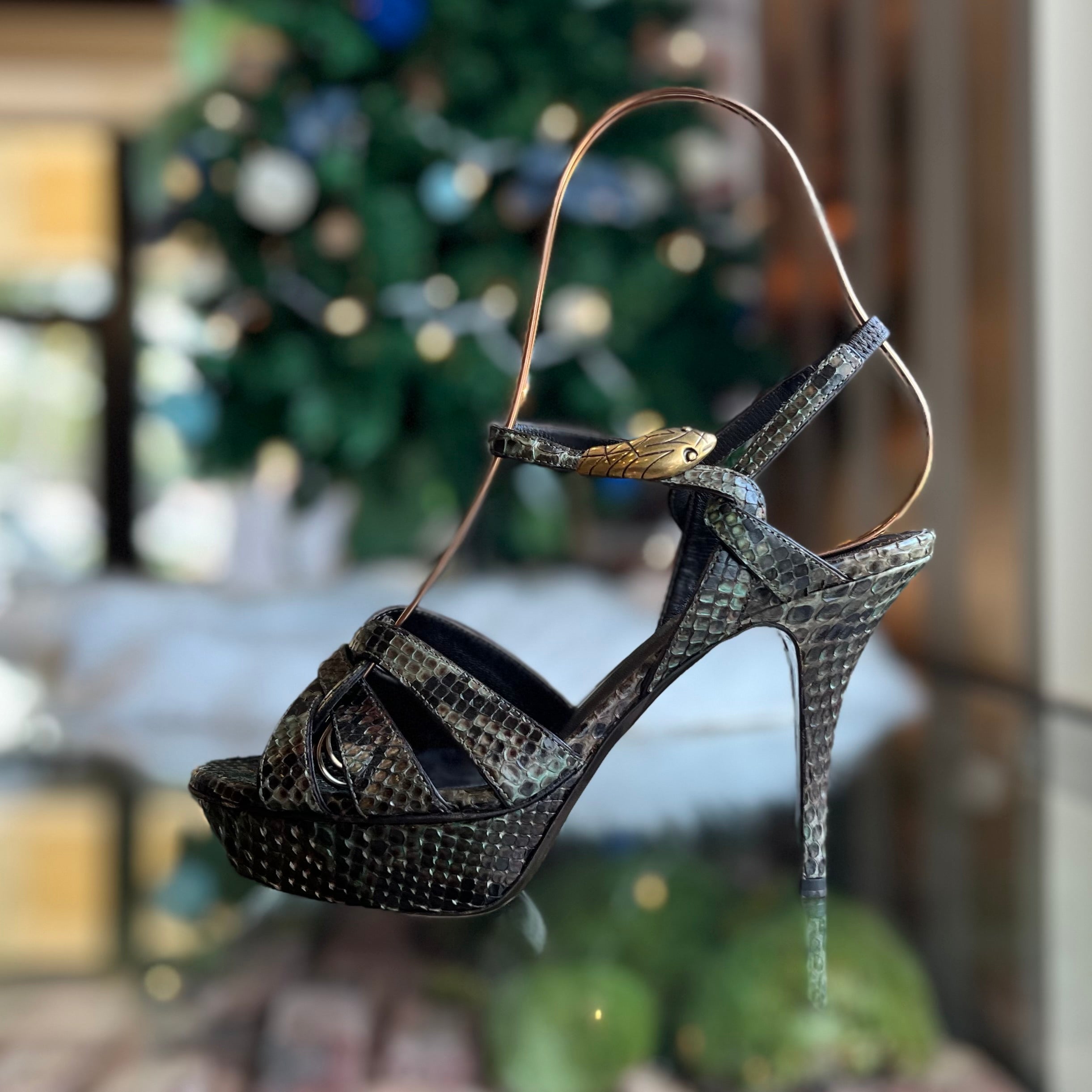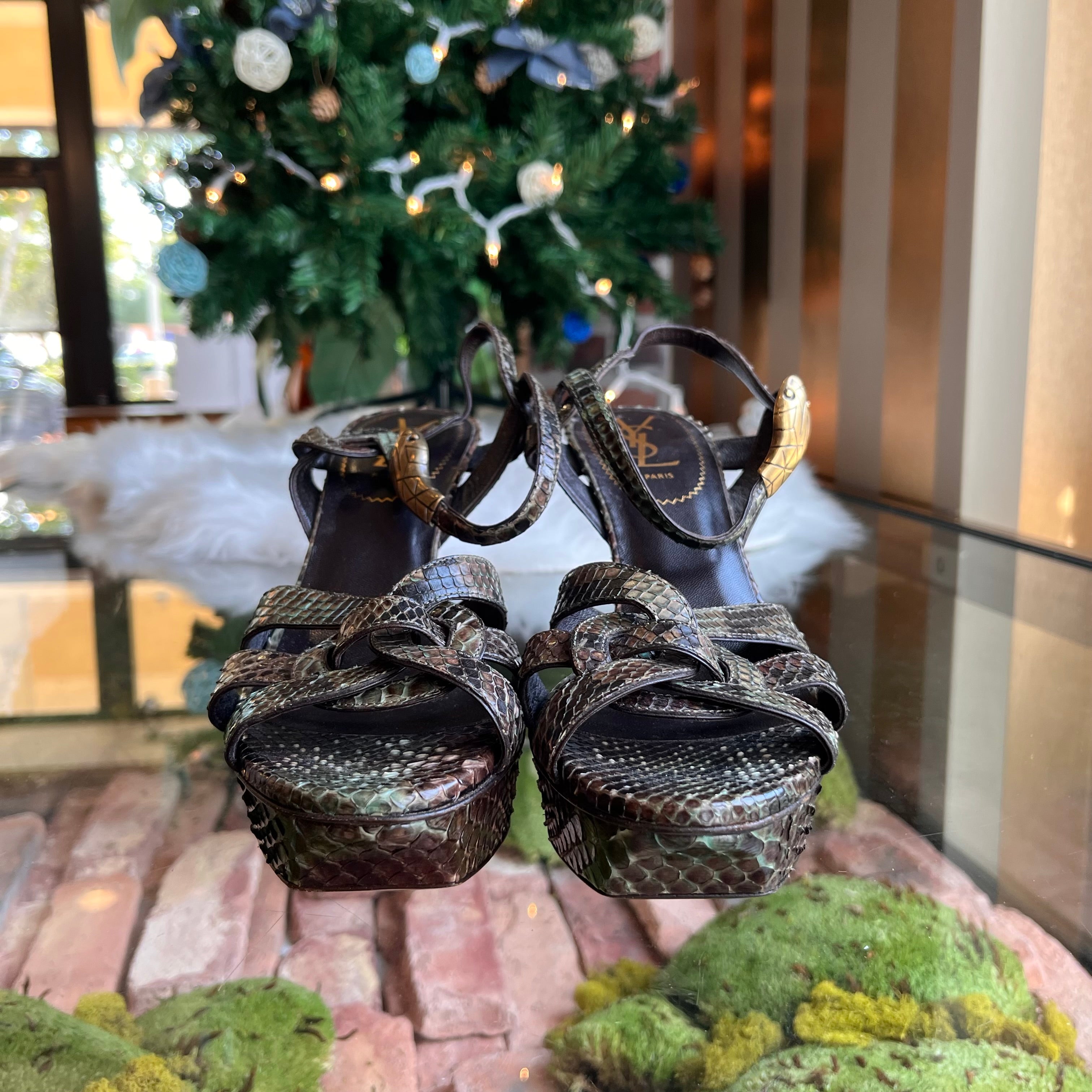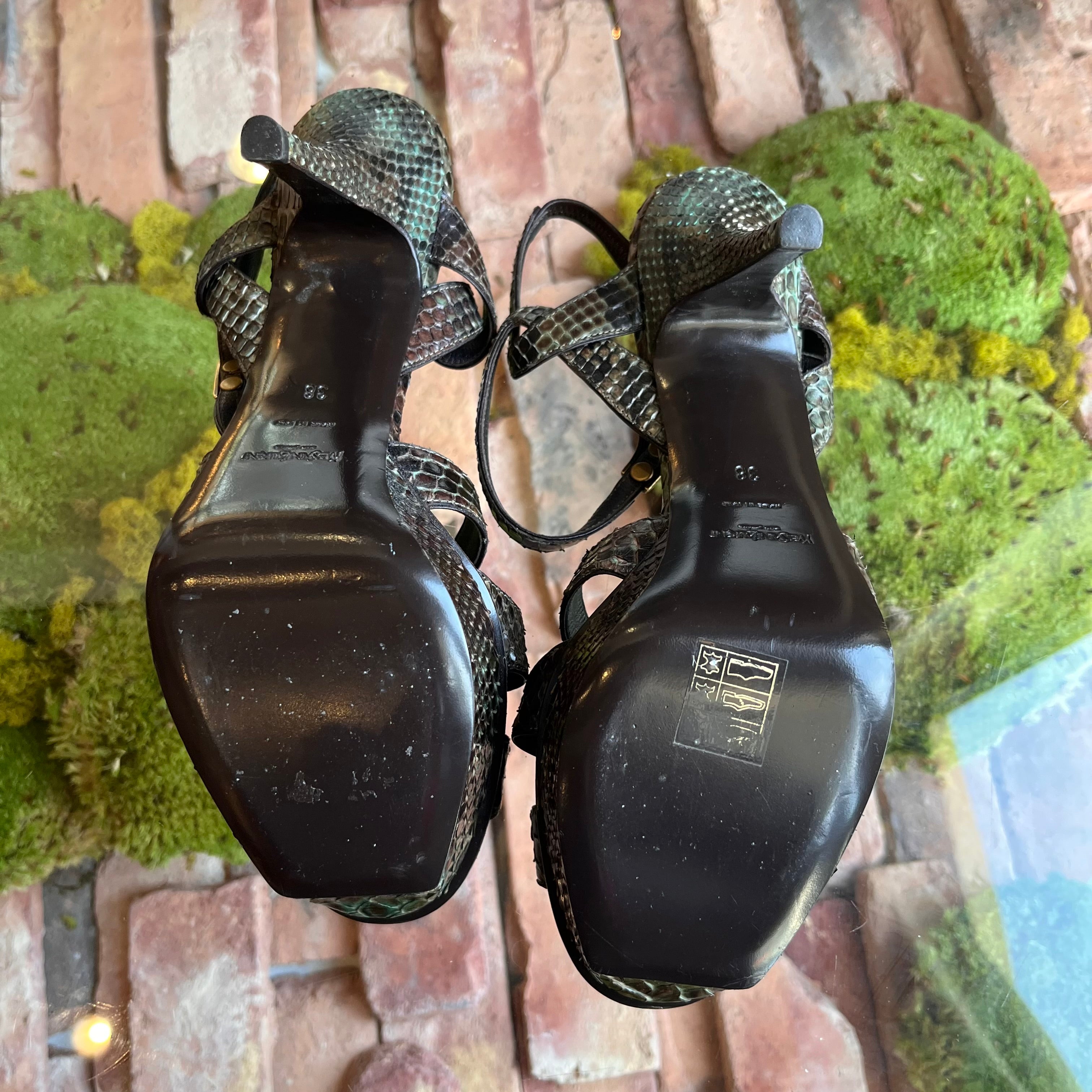 SAINT LAURENT Tribute Brown Snakeskin Platform Heels SZ38(8US)