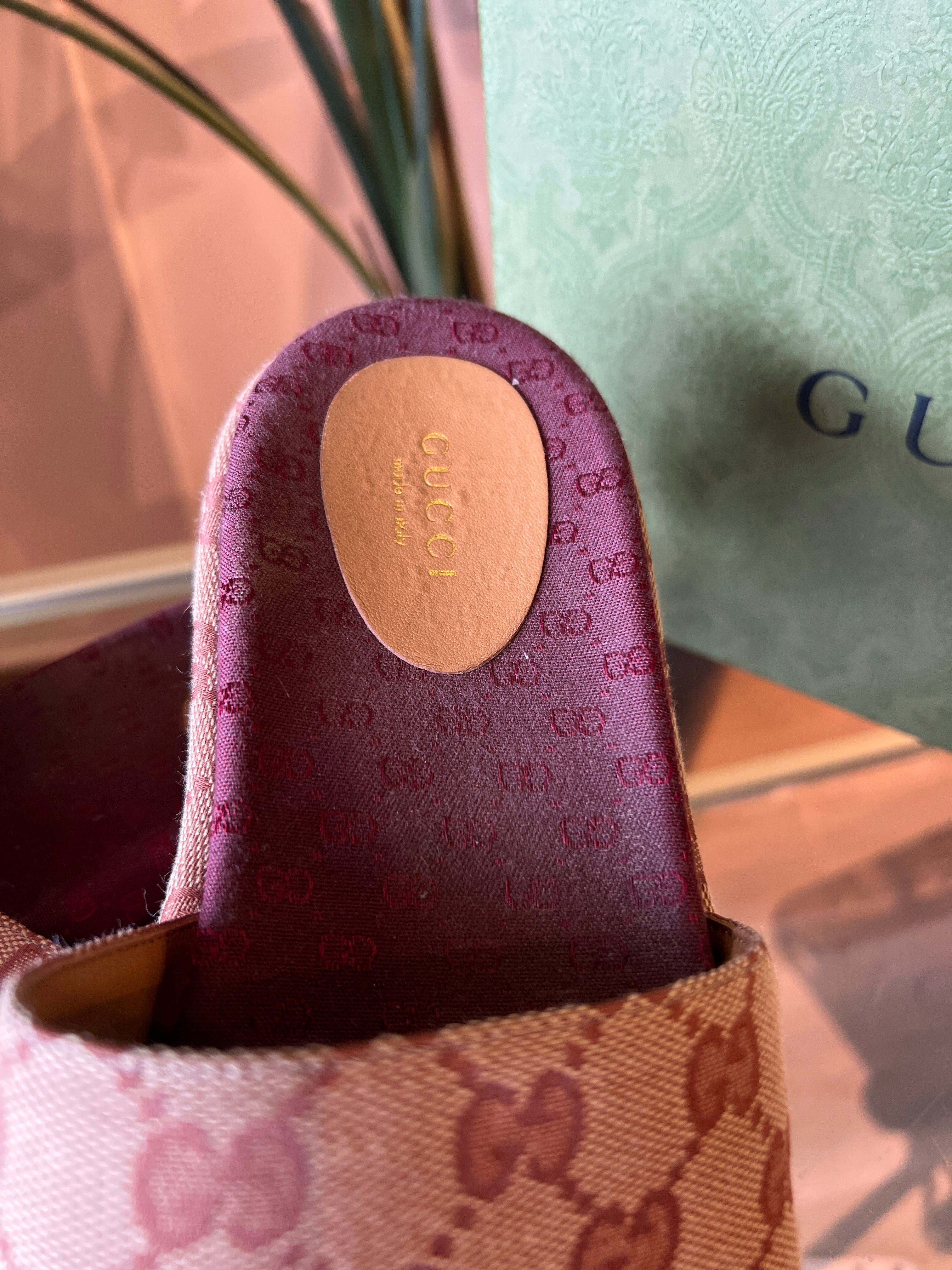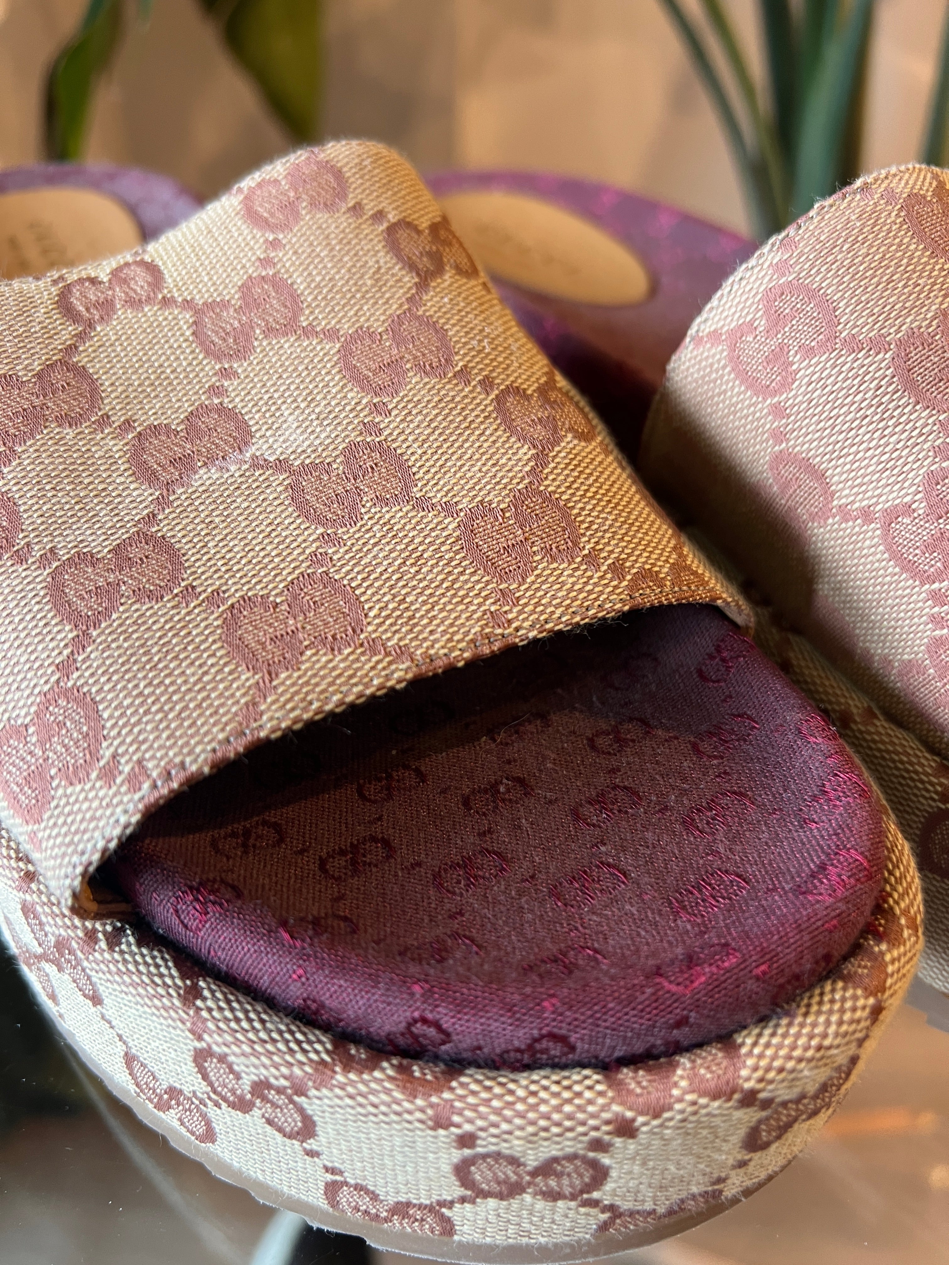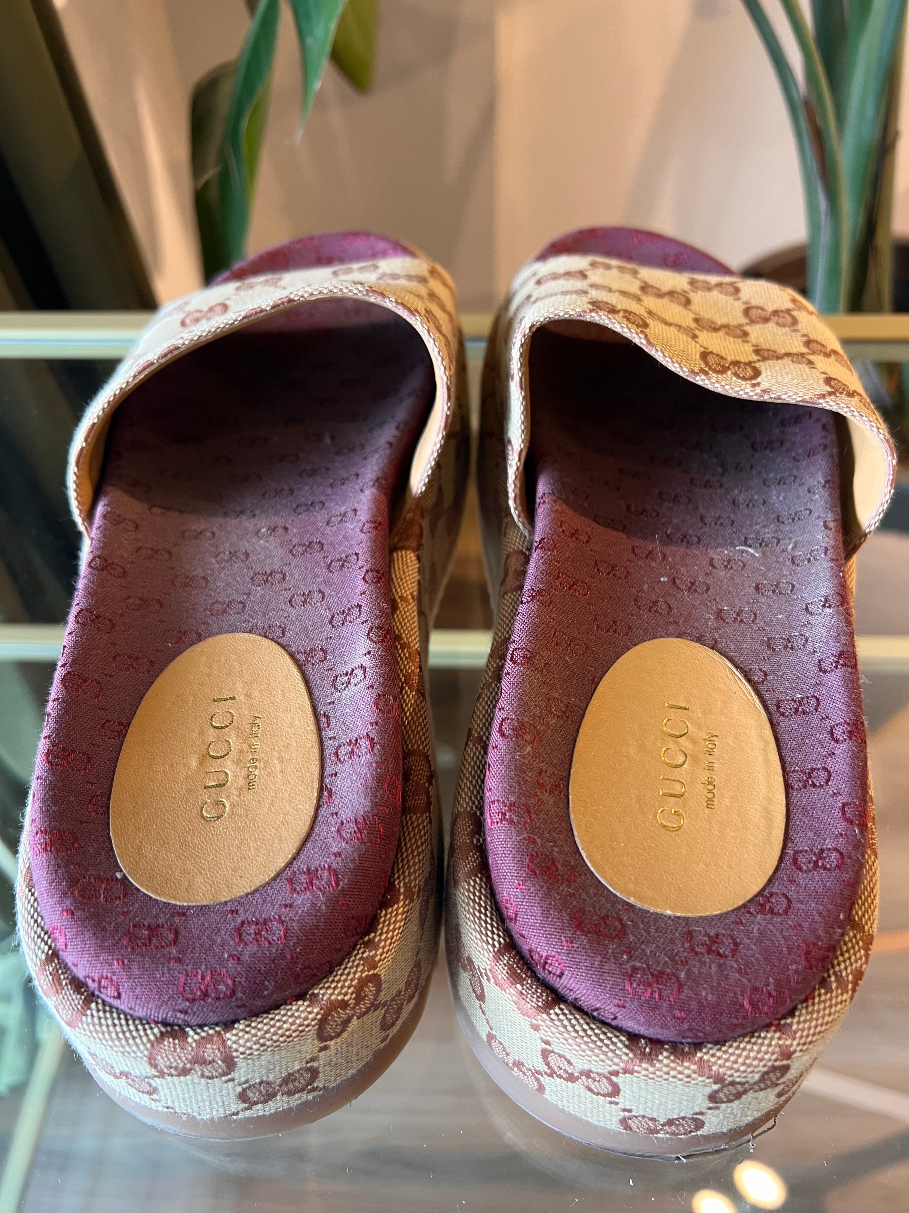 GUCCI Angelina Canvas GG Monogram Platform Slide Sandals SZ39.5(9.5US)
