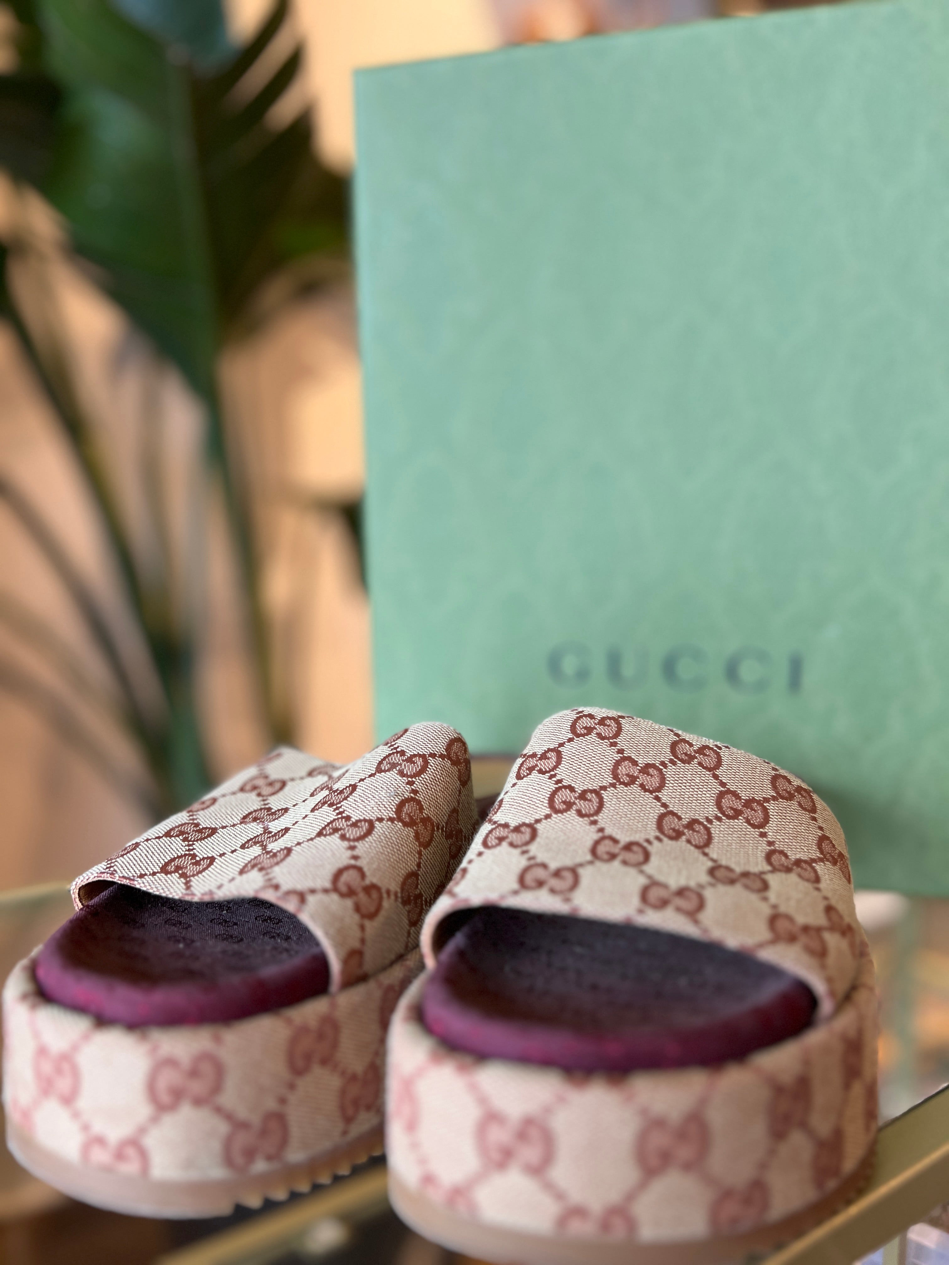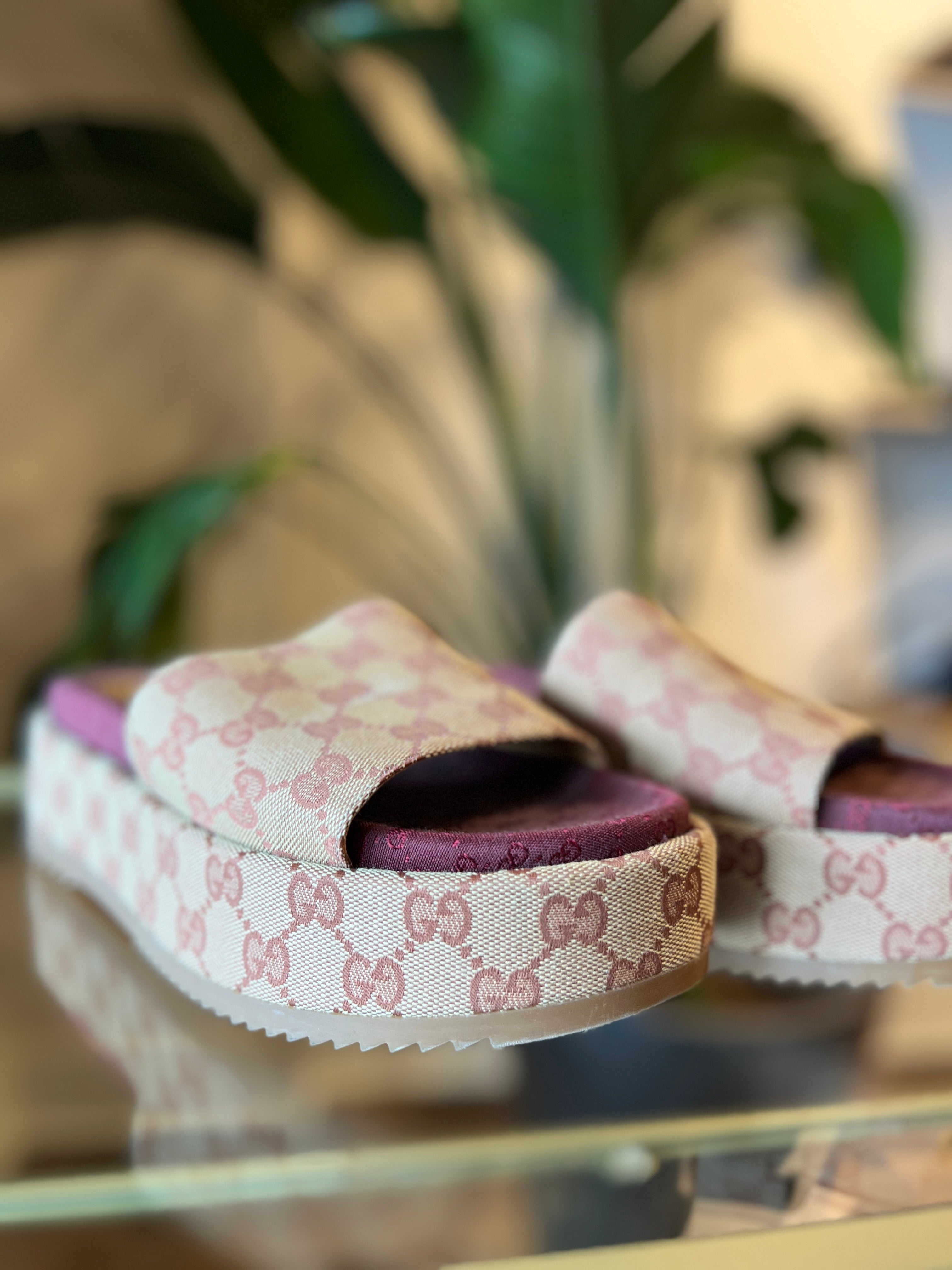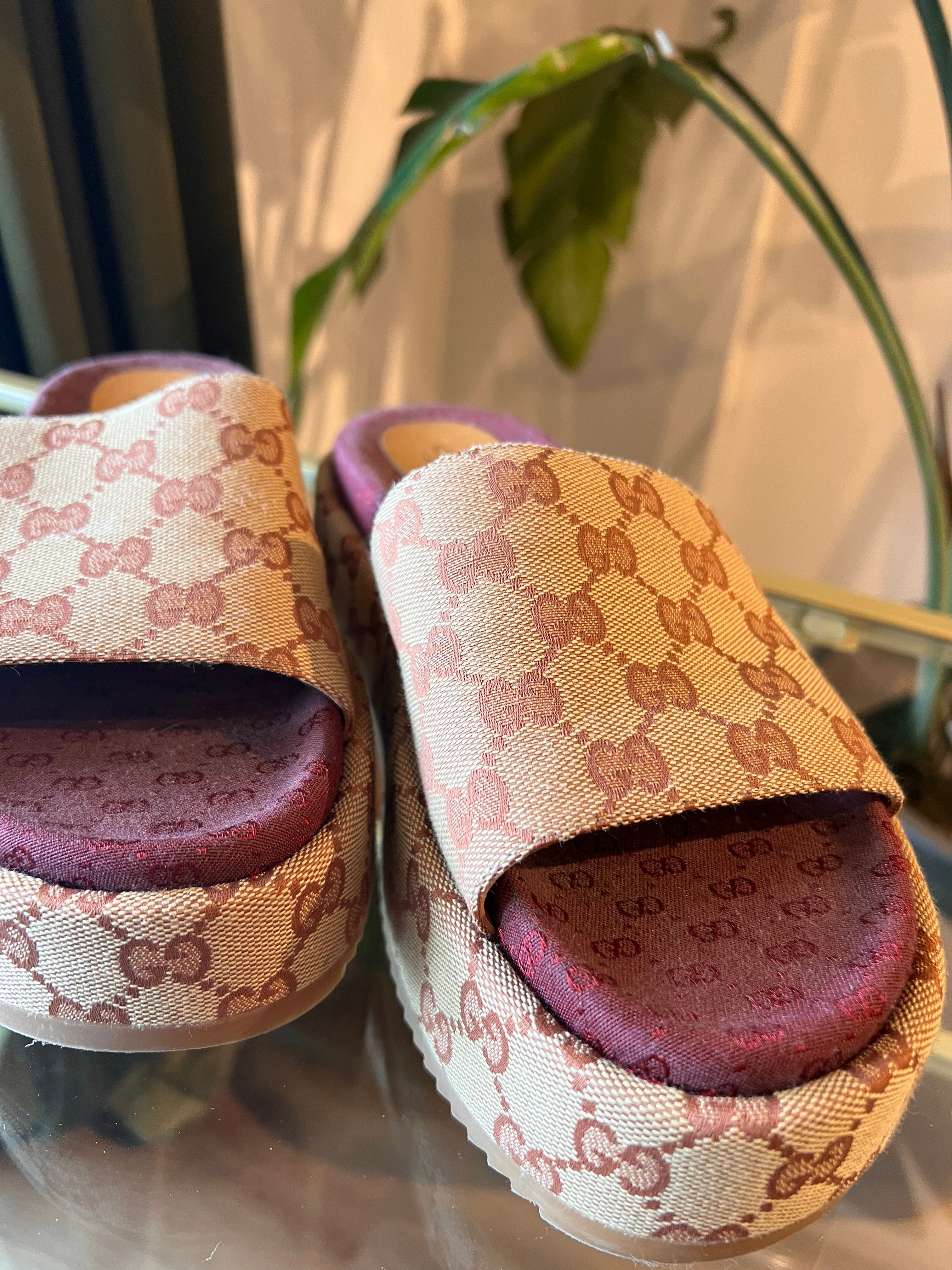 GUCCI Angelina Canvas GG Monogram Platform Slide Sandals SZ39.5(9.5US)